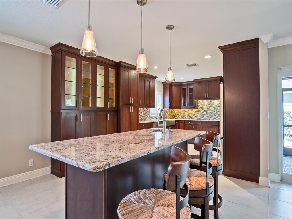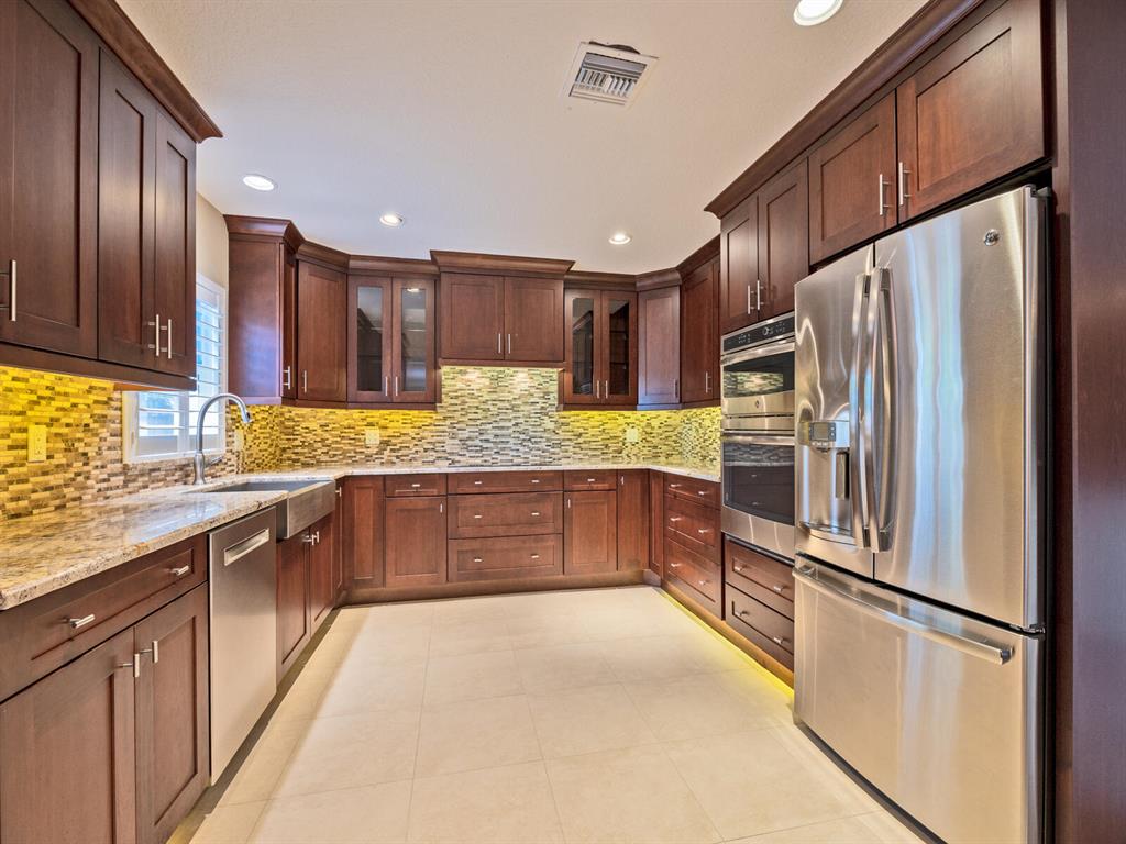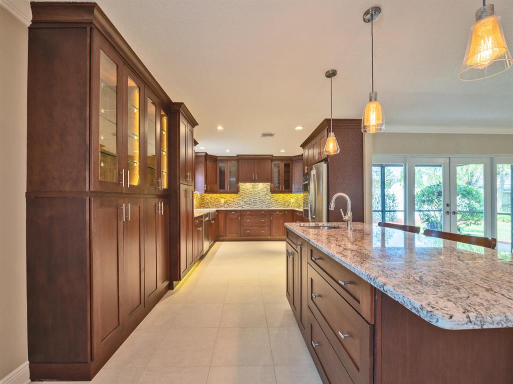 This remodeled home has an open concept and features a HUGE updated kitchen with imported granite countertops, wet bar and GE profile appliances. You will be ready to entertain in style. The large master suite has wood floors, walk-in closet with custom shelving, dual sinks, Toto washlet/toilet and access to private back yard. Neutral style ceramic tile in living space and oversized laundry room that has extra storage and could be used as an office. When it comes to storm protection, you can rest easy knowing the whole home generator, impact windows and doors, upgraded electrical panel, newer a/c and ductwork have you prepared. The exterior is beautifully landscaped, has custom lighting and room for a boat or RV. Easy to view!