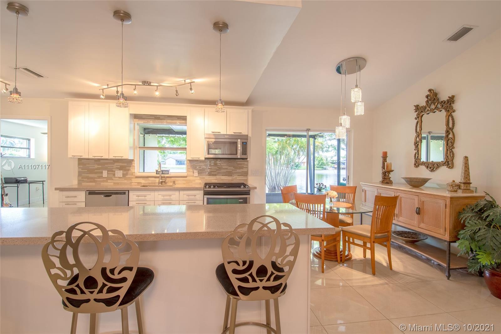 Recently updated 3/2 waterfront home in the sought-after Sunrise Golf Village. Minutes from Sawgrass Mall, restaurants, BB&T Center, new Sunrise Aquatic Center, and major highways. Featuring vaulted ceilings, open floor plan, tile floors throughout, and a large additional room that can be used as a den or an extra bedroom. The remodeled kitchen features an oversized bar counter, quartz countertops, Swarovski crystal lighting, high-end cabinets & appliances. The split bedroom layout lends extra privacy with both bathrooms newly renovated. Panoramic lake views make this home perfect for barbecuing, kayaking or watching the sunset from the screened patio. Roof redone in 2017, exterior painted in 2018, newer Rheem HVAC, hurricane accordion shutters throughout and No HOA fees! Must see!