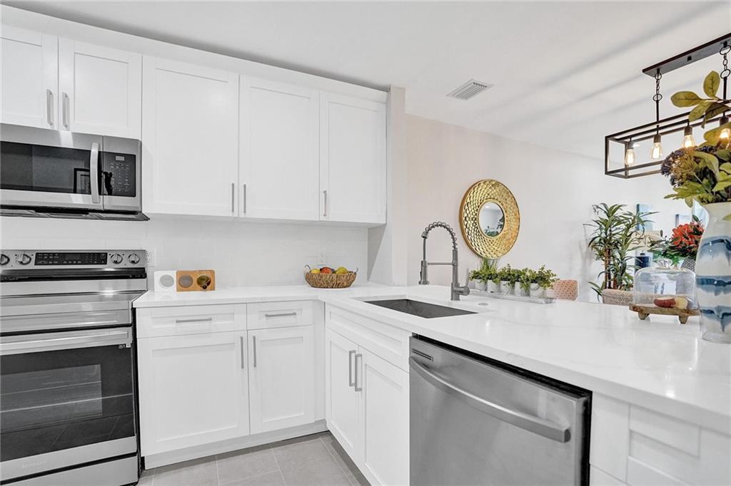 Spectacular and completely renovated 2 bed, 2.5 bath, corner-unit townhome located in East Ft. Lauderdale! Large and spacious open floor plan with an extensive wrap-around back yard, perfect for entertaining. This turn key townhouse consists of a brand new, freshly remodeled kitchen, bedrooms and bathrooms, a plethora of natural light and direct access to the pool area. Other new features include: All Samsung stainless steel appliances, Carrera quartz countertops with custom white maple wood cabinetry, new water heater, custom kitchen nook, walk-in closets, French doors and 2 deeded parking spaces. The location is perfect, as you can walk to local shops, restaurants, bars and much more. Walk/Bike to the beach and many other entertainment venues! *Showings at Open House this Saturday*