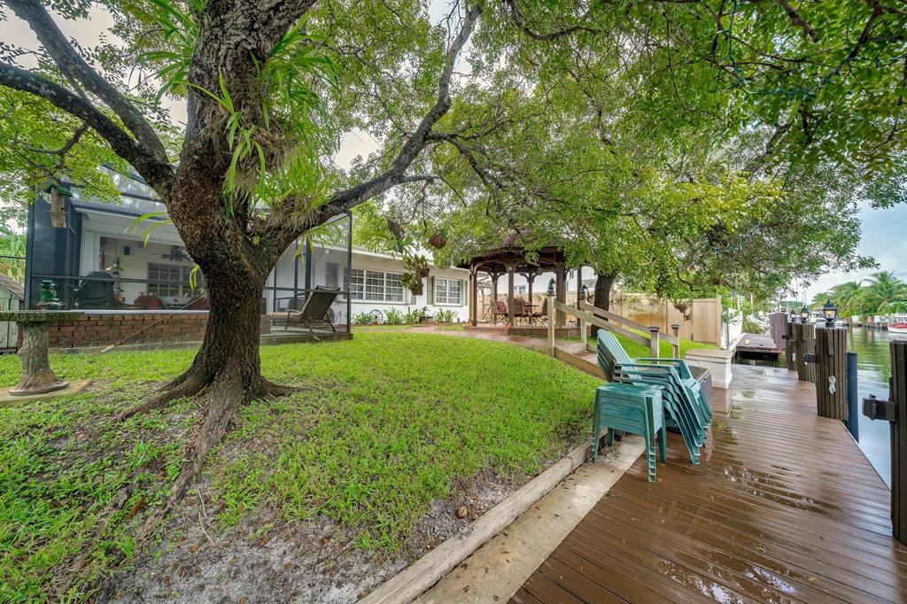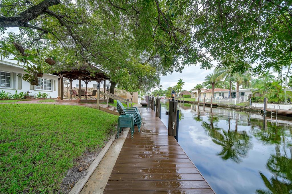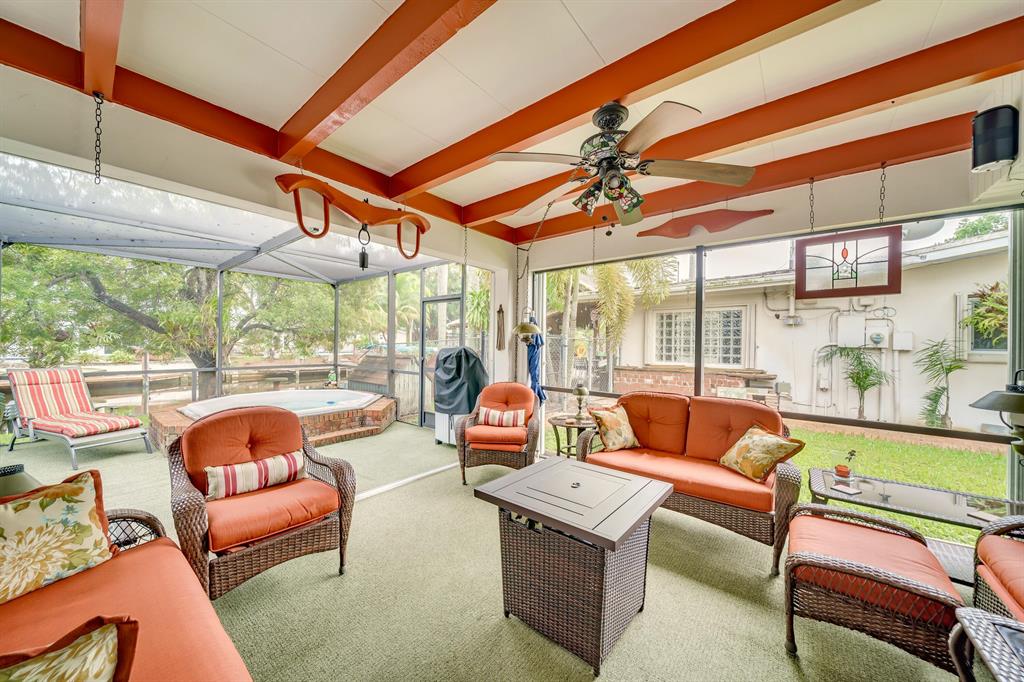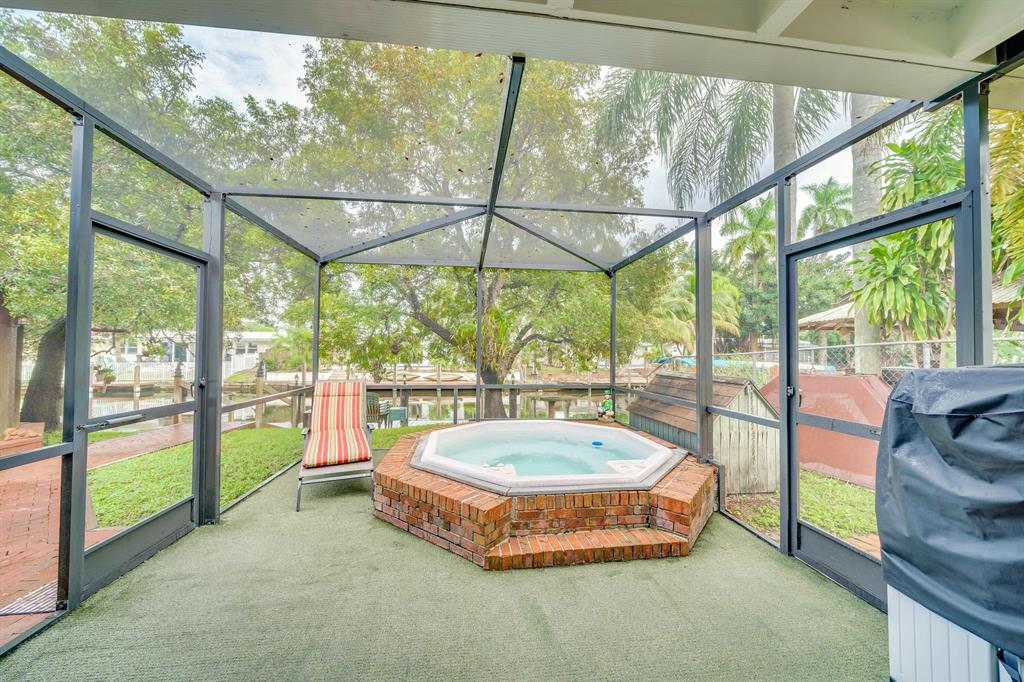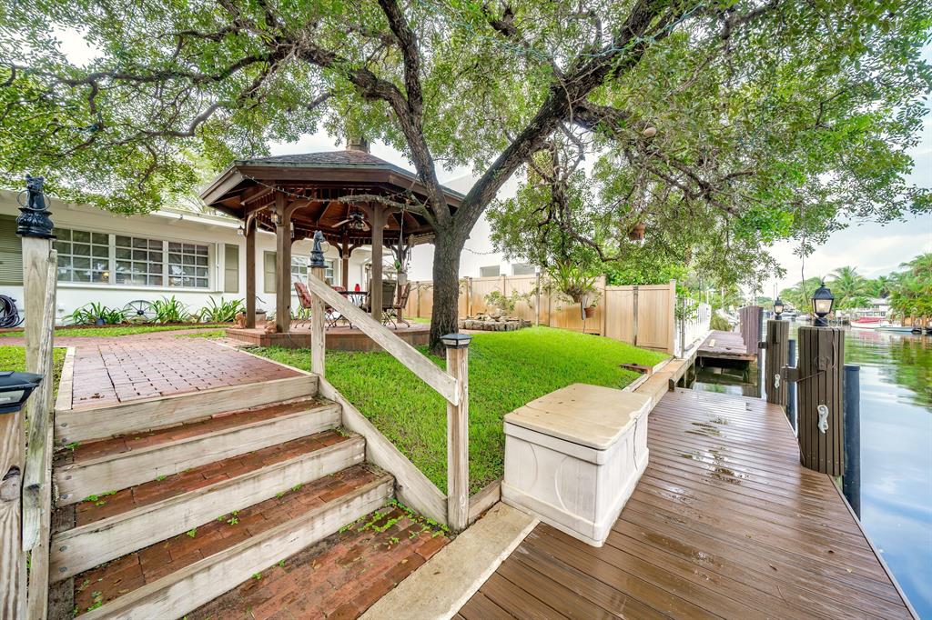 This charming and meticulously maintained 3/2 home is on a deep water ocean access canal with no fixed bridges. This property has the ideal backyard exposure facing east. Keep your boat parked in your backyard on a new 45 foot Trex composite dock with electric that can hold up to a 60 foot boat. Enjoy your breakfast or evenings underneath the Gazebo overlooking the water or sit in your roofed screened patio or even take a dip in the spa. This stunning property offers an open floor plan with cathedral beamed ceilings, wood burning brick fireplace; upgraded kitchen with solid cherry wood cabinets with maple interior shelving and granite counter tops. The master bathroom has an upgraded walk in shower with beautiful Italian porcelain tile, double shower fixtures on each end and a custom bench