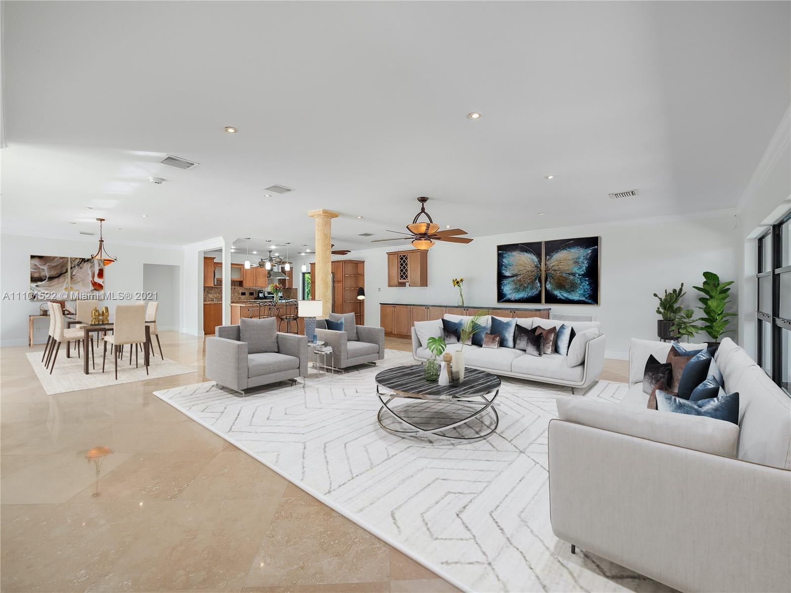 Enjoy Miami summer nights sitting out back by the sparkling Pool and Rock Waterfall. This oversized lot in the sought after neighborhood of Keystone Point will excite you. Chefs will delight in this beautiful open kitchen with Natural Gas and Granite Countertops. Plenty of room for outdoor entertainment with a 14,450 SQFT LOT with Fruit Trees, 2 Terraces and private fencing. Parking for entertainment with your oversized Front Circular Driveway and an ADDITIONAL 5FT HIGH Electrical GATE SIDE DRIVEWAY. Feel safe with ALL NEW HURRICANE/ IMPACT WINDOWS, DOORS and a 25 KW GENERATOR. Polished Marble and Bamboo Wood floors are what you will find inside this 2,600+ SQFT home. Close by you will find Bal Harbor shops and beaches less than 3 miles. This beautiful home is a 24hrs gated Community.