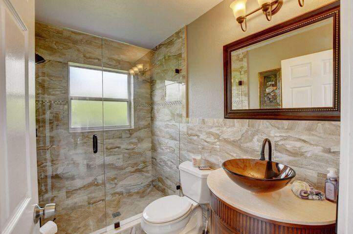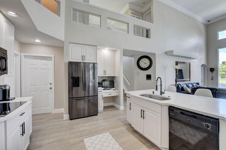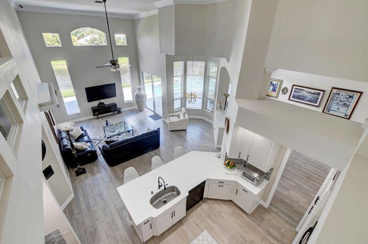 Renovated lake front Palm Beacher model rarely available in the highly desirable community of Boca Isles South. New roof which was just replaced June 2021, with a transferable warranty. The front entrance welcomes you into the grand living and dining rooms which boast 20 feet high. First floor master suite features a jacuzzi tub and separate walk-in shower. There is one additional guest bedroom and bathroom on the main floor, with the 3 additional bedrooms, and 1 additional bathroom upstairs. All of the bathrooms beautifully renovated.