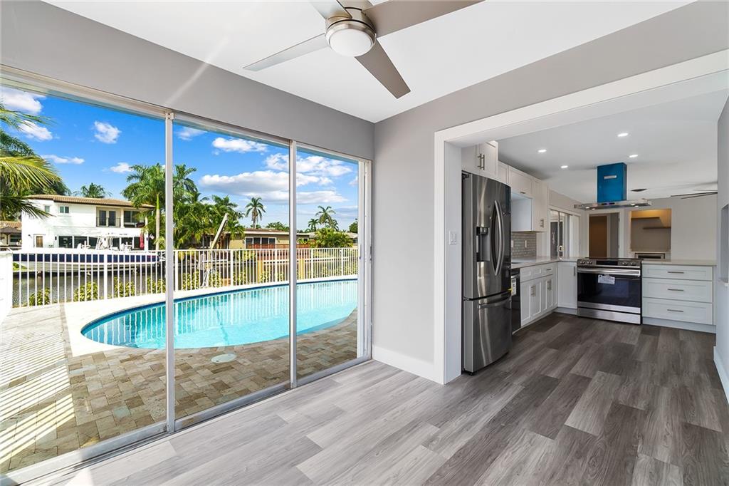 Beautifully remodeled waterfront home with ocean access in desirable Cypress Harbor! This 3 bed 2 bath home boasts 79' of water frontage and an incredible outdoor oasis. Only 2 fixed bridges and the SE 5th ave bridge is currently being raised which will increase value. Entirely renovated with top of the line finishes including brand new...solid wood shaker style cabinets, quartz countertops, stainless steel appliances, washer/dryer, wine fridge, vinyl flooring throughout, travertine pool deck and front walkway, 20ft dock, impact front door and garage door, pool resurfaced with new pool pump, new electrical panel, fresh paint inside and out, mostly impact windows except for sliders, Water Heater 2021, AC 2016, Roof 2009. NO SHOWINGS UNTIL OPEN HOUSE