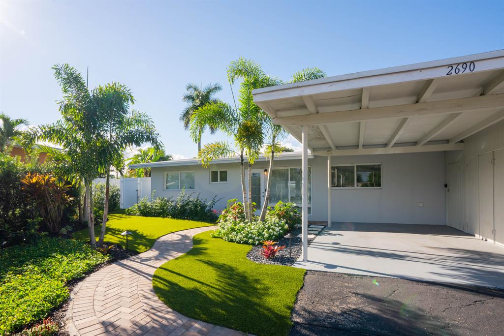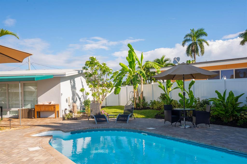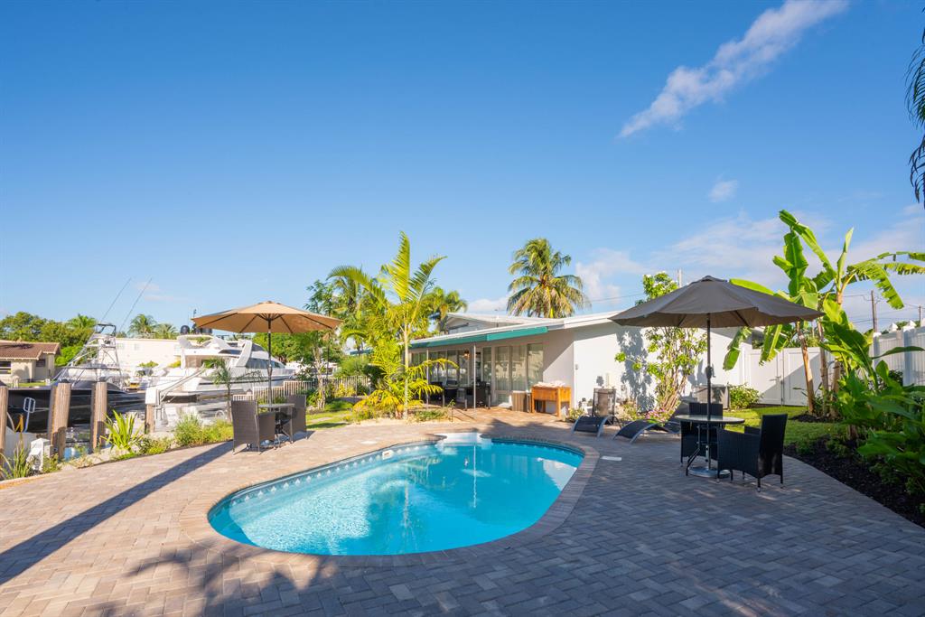 Rarely available point lot with wide water views of the new river. This amazing home has a new 100 foot dock and over 132 foot of non fixed bridge waterfront, perfect for up to 120 foot yacht. The dock has 150 amp electrical service and water. This waterfront dream is fully remodeled with high-end finishes and upgrades including a new roof, new HVAC, remodeled kitchen with stainless steel appliances. Both bathrooms are also fully remodeled. On the exterior new landscaping in the front and rear, white vinyl privacy fence, new extended paver patio around the pool and steps down to the dock. This is the only waterfront lot in the area for sale near this price point with over 100 foot of dock space for a mega yacht. Yacht owners dream, stop renting dock space and buy this house.