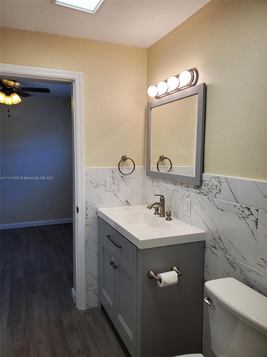 A special opportunity awaits you to be the lucky owner of a fully remodeled home. New flooring, cabinetry, SS appliances, fittings & fixtures, int./ext. lighting & doors, ceiling fans, window blinds, electric smoke/fire alarms, and electrical & plumbing throughout the home. Freshly painted inside & out. Convenient in-house laundry & utility room, too! Roof 3 yrs. new. Impact windows, sprinkler system, and freshly coated epoxy seal on carport & porch/patio surfaces. Spacious & peaceful backyard ideal for outdoor entertaining & large enough to add a pool! Fencing lines the entire perimeter of property. Fruit trees of mango, avocado, & banana dot the landscape. Make this move-in ready family house Your Home.