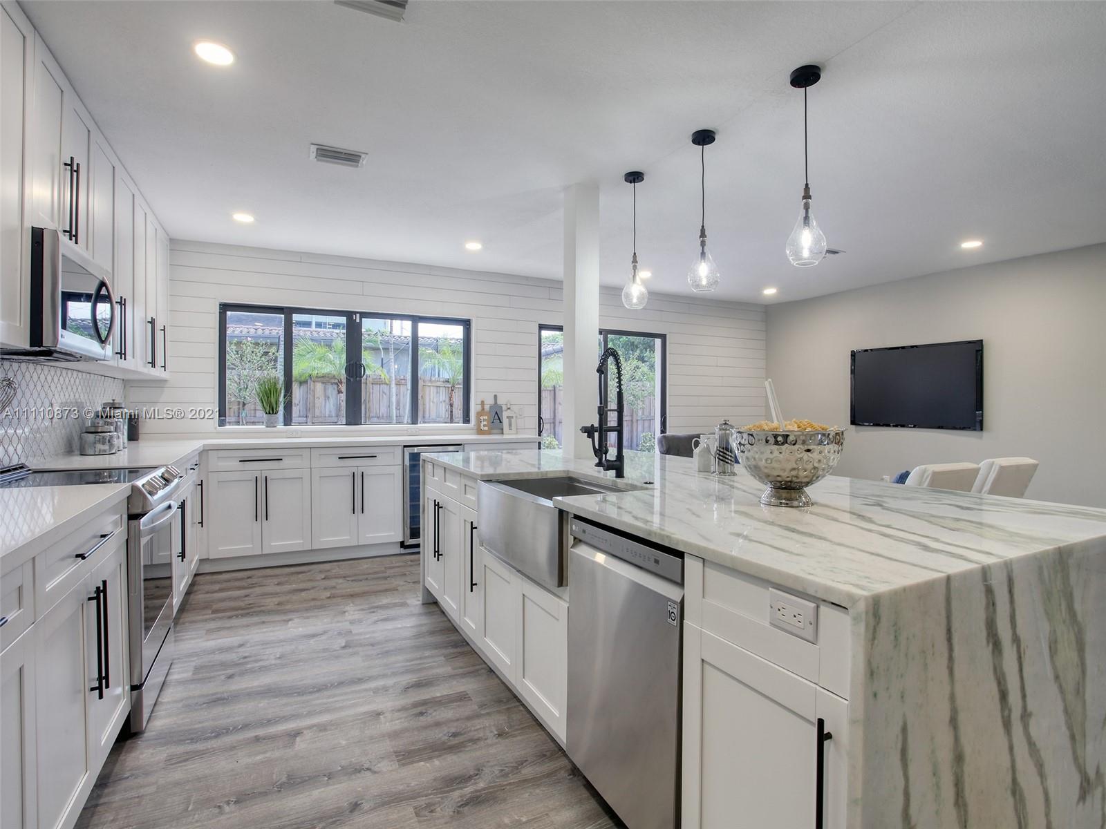 6000+ sqr Ft WOW FACTOR! Home could have a pool built (pool pics are digital rendering). This 5/4 with an office has been completely renovated with PERMITS. Huge white marble streaked kitchen. Ship-lap on the walls. 4 completely gorgeous bathrooms. Grey wood plank waterproof vinyl flooring throughout. Huge Vaulted ceilings. Enormous master bedroom and bathroom on the bottom floor. 3 bedrooms on the bottom floor, 2 upstairs. Upstairs has a large lounge/game room/bar area and 2 bedrooms and a gorgeous bathroom. Impact windows and natural lighting. Newer roof. Huge Driveway. 5 Min from the beach. Gorgeous backyard, clean, open, modern and relaxing. As a Vacation Rental, it rents for up to 185k a year! This home is one of a kind and redone down to the studs.
