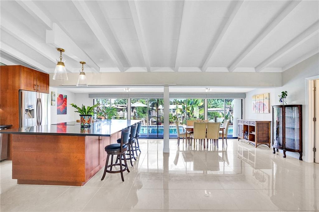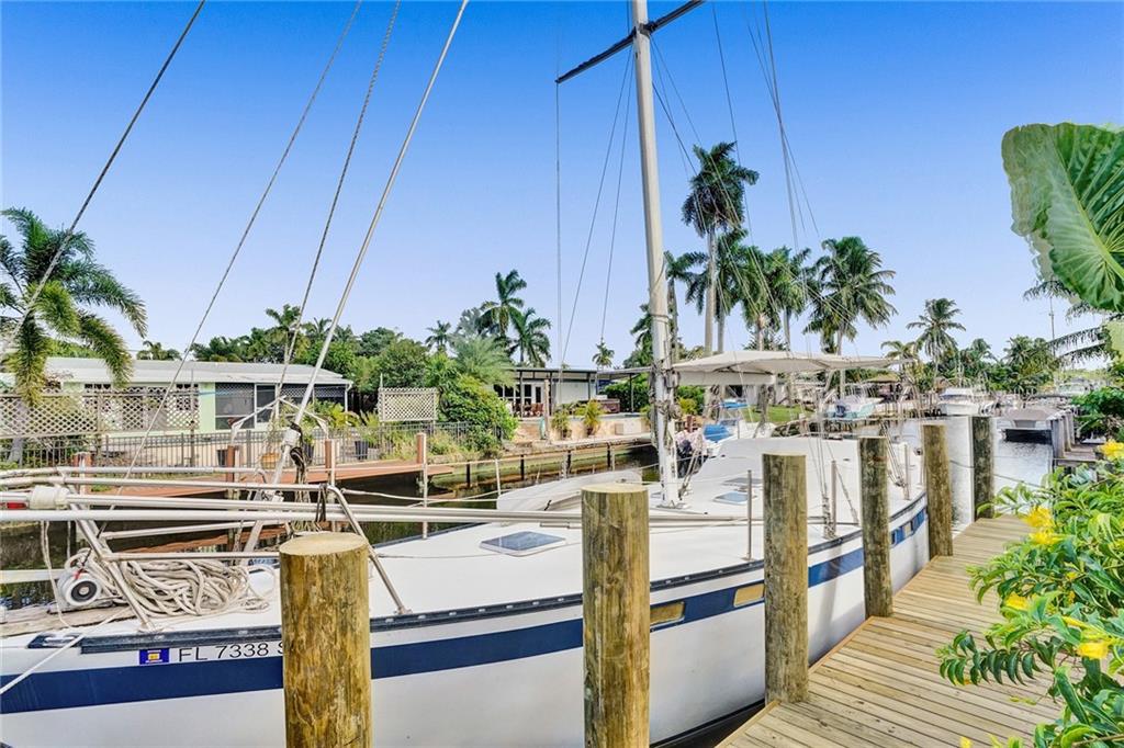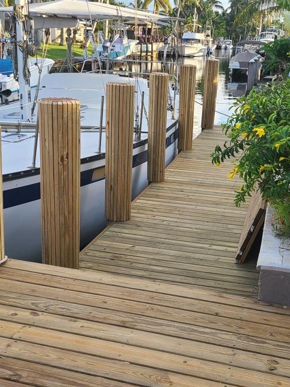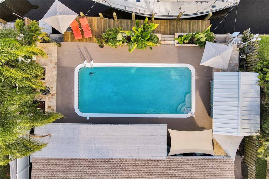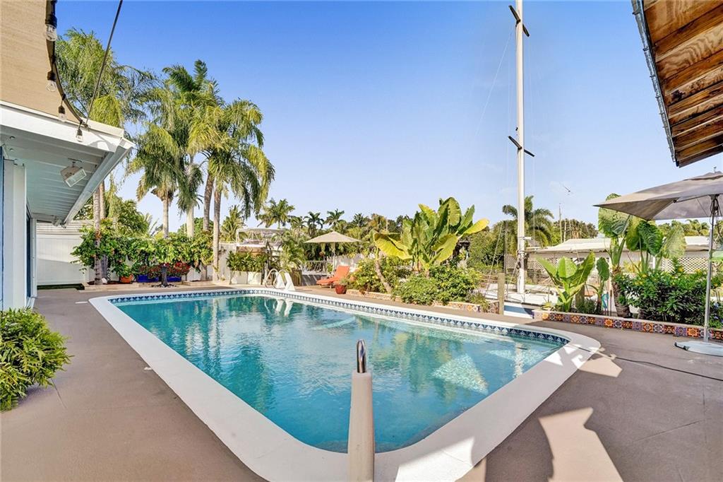 Your Tropical Paradise 3BD 2BA Waterfront Pool home you have been waiting for. Property features an Open Floor Plan with white porcelain tile throughout, split floor plan, vaulted wood beam ceilings, Impact Windows and Doors (2018) and easy-close hurricane concertina shutters for the back portion of the property. Fully fenced back and sides. Exterior has been professionally refinished and painted (2021). New Roof in 2020, 65ft of Ocean Access Waterfront with a New 45ft boat dock (Oct 2021). Move in ready! Come relax in your 32x16x9 Saltwater Pool, or at the lovely outdoor seating areas and tiki hut having a nice cold beverage in the shade. Minimal yard maintenance, & mature tropical landscaping. NO FIXED BRIDGES to ocean access and cruising the waterways around the area!