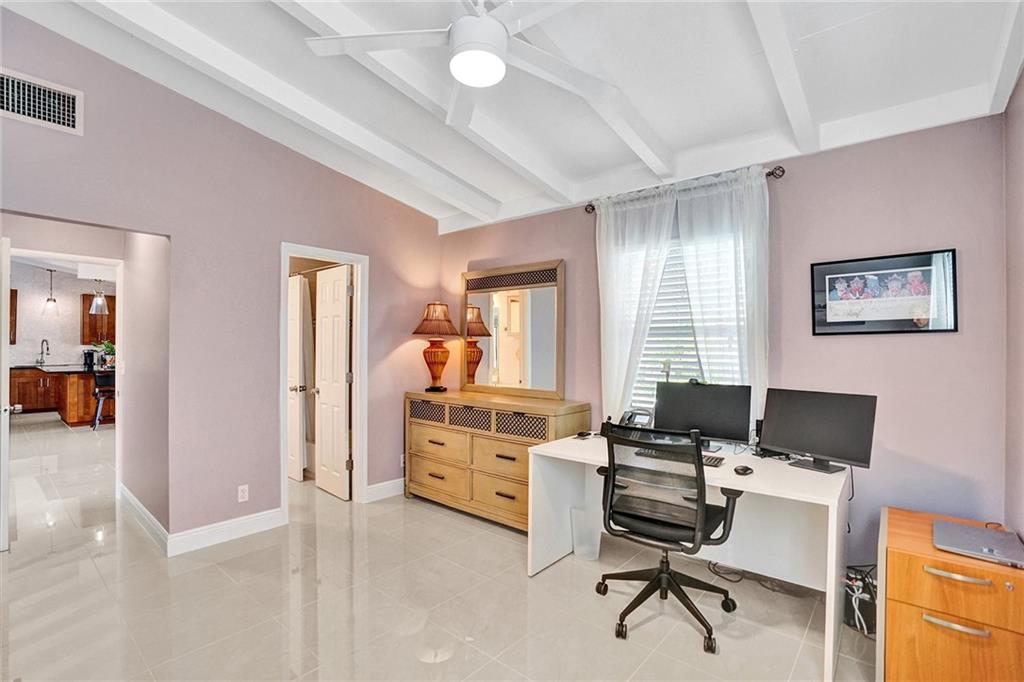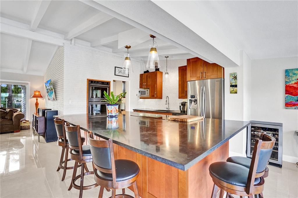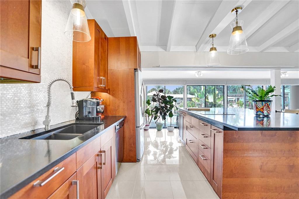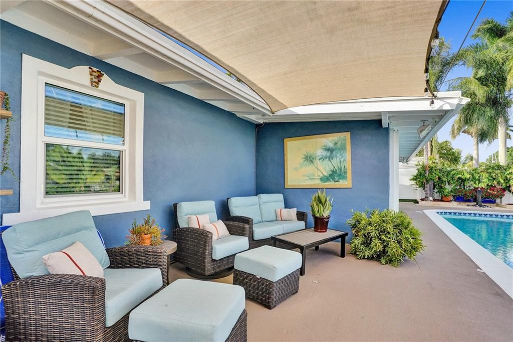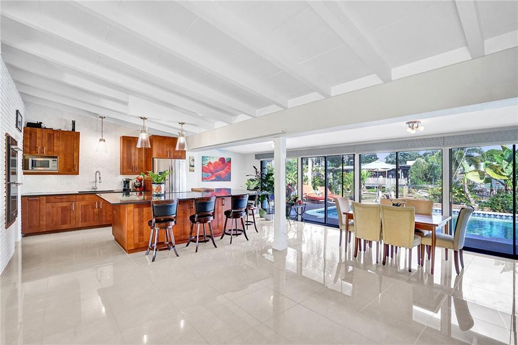 Your Tropical Paradise 3BD 2BA Waterfront Pool home you have been waiting for. Property features an Open Floor Plan with white porcelain tile throughout, split floor plan, vaulted wood beam ceilings, Impact Windows and Doors (2018) and easy-close hurricane concertina shutters for the back portion of the property. Fully fenced back and sides. Exterior has been professionally refinished and painted (2021). New Roof in 2020, 65ft of Ocean Access Waterfront with a New 45ft boat dock (Oct 2021). Move in ready! Come relax in your 32x16x9 Saltwater Pool, or at the lovely outdoor seating areas and tiki hut having a nice cold beverage in the shade. Minimal yard maintenance, & mature tropical landscaping. NO FIXED BRIDGES to ocean access and cruising the waterways around the area!