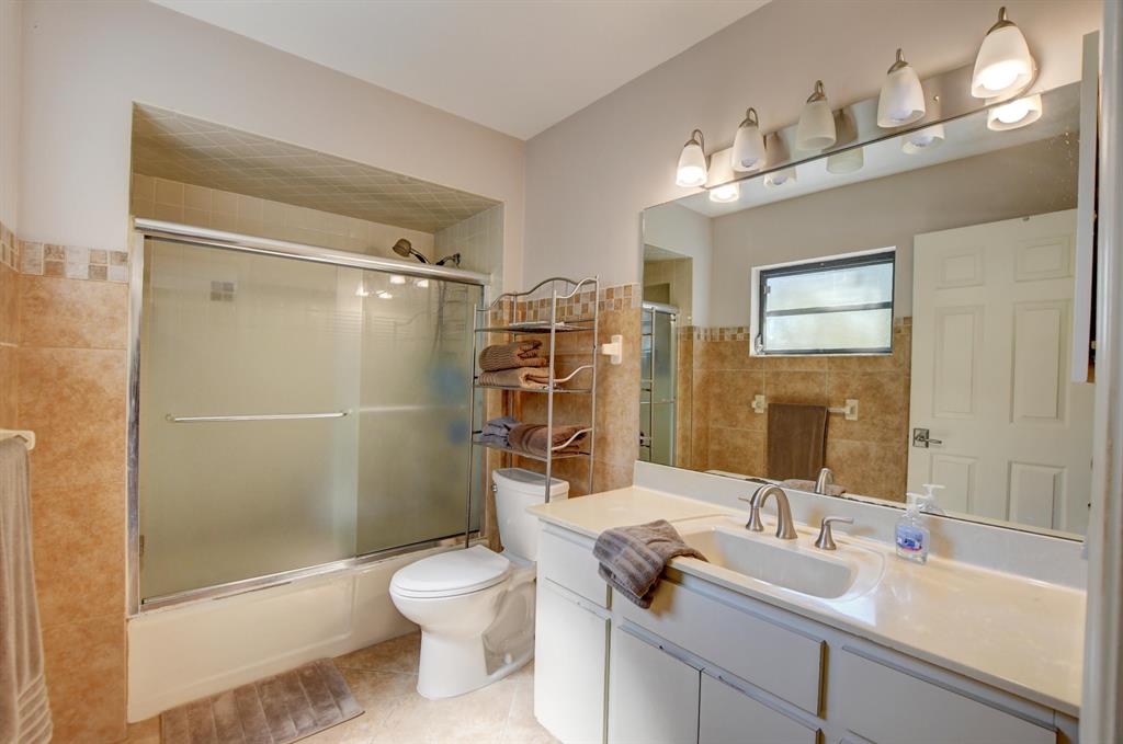 Have the kids walk to school! Open floor plan with vaulted ceilings and split bedrooms. Tile floor throughout, updated kitchen with granite counters and eat in breakfast bar. Large dining area overlooking backyard with pool, Walk in closet with built in shelves in master bedroom. Air conditioned garage with epoxy coated floor. Fenced, large backyard with pool faces east with plenty of room for a tiki or an outdoor kitchen. This family home in the best school districts in Boca won't last-.