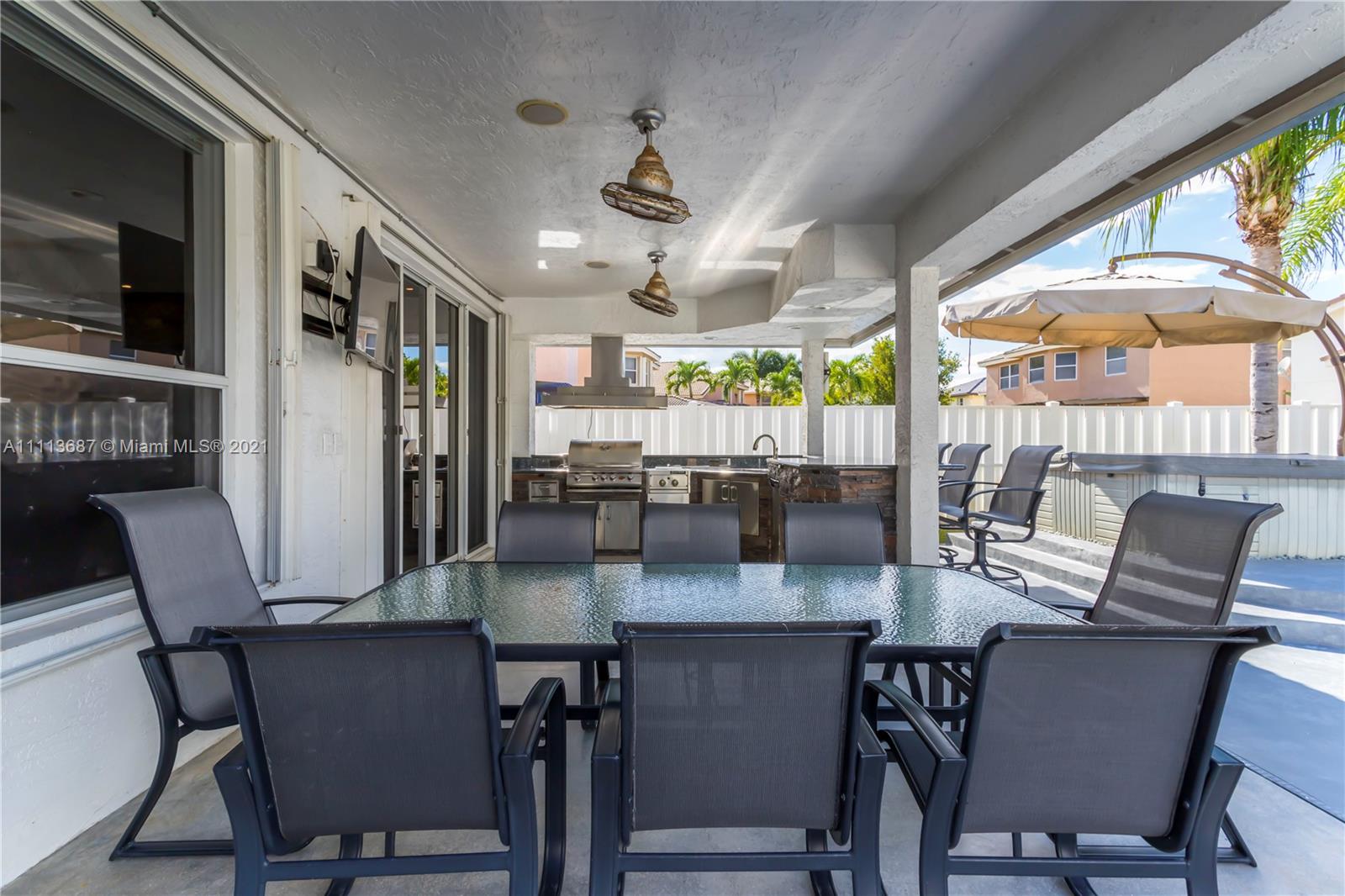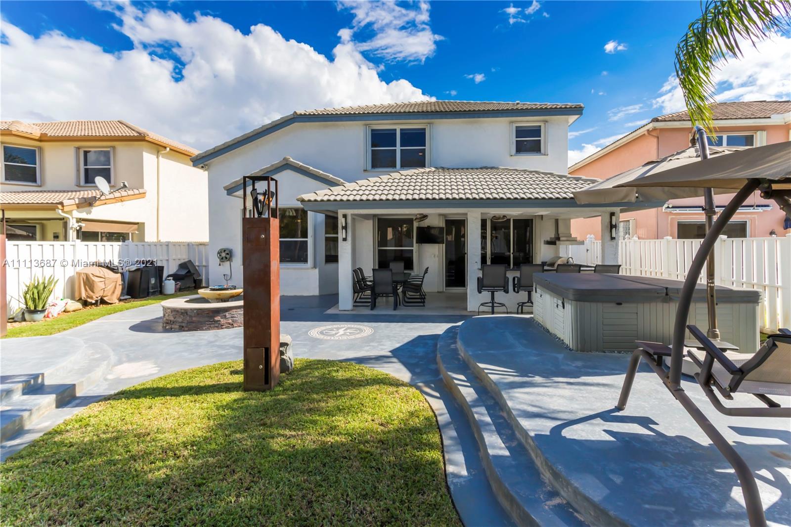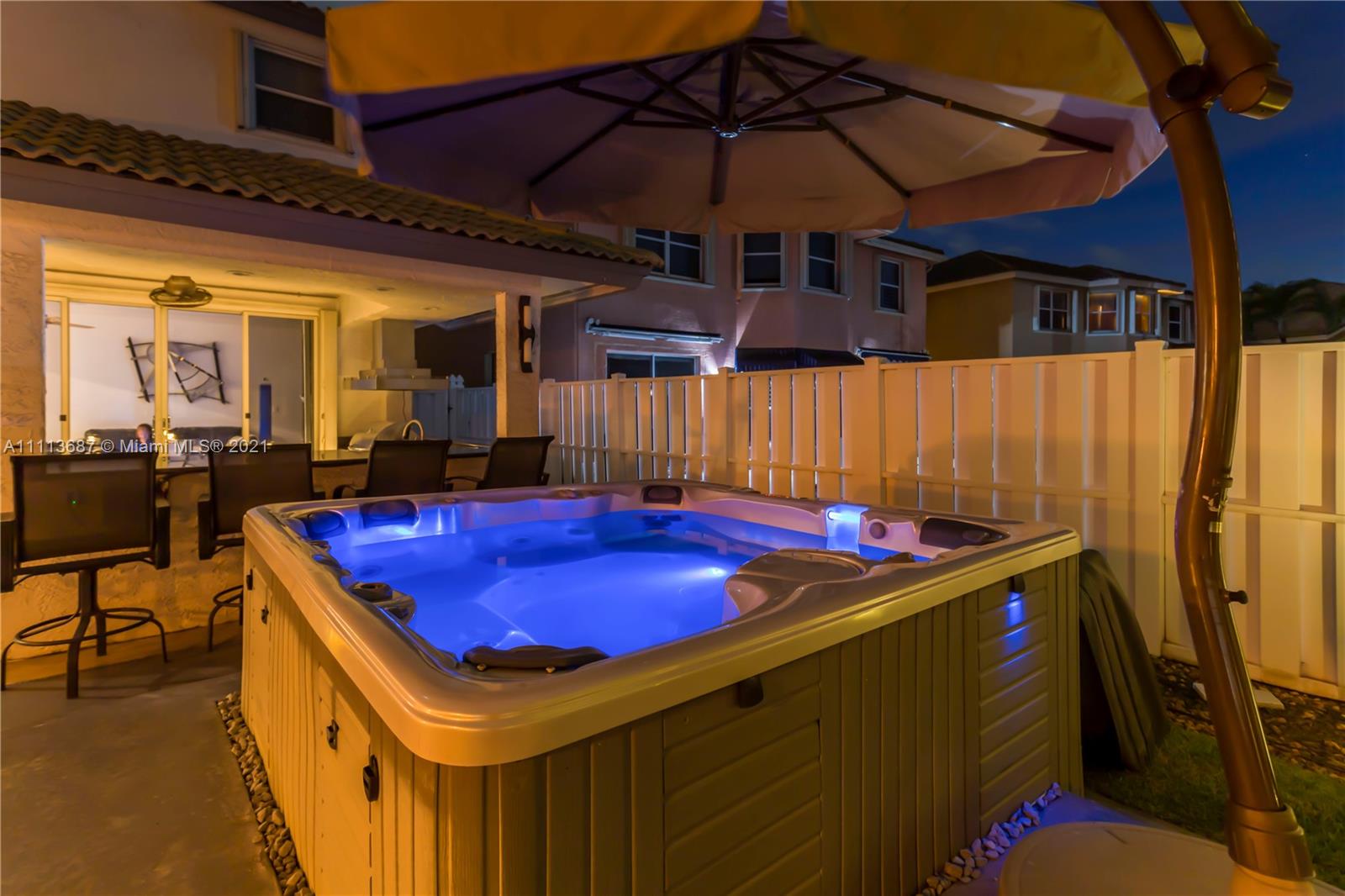 COMPLETELY REMODELED MODERN STYLE HOME IN SILVER SHORES. THIS UPSCALE HOME FEATURES PORCELAIN TILES THROUGHOUT FIRST FLOOR WITH CUSTOM MEDALLION IN FOYER. STAIRWAY HAS CUSTOM DECORATIVE WALL AND GLASS RAILINGS. MODERN FIREPLACE AND A BUILT IN BAR/WINE COOLER. ALL BATHROOMS COMPLETELY REMODELED WITH MODERN LIGHT FIXTURES AND VANITIES. JACK & JILL BATHROOM UP STAIRS. FIVE STAR RESORT STYLE MASTER BATH HAS HIS AND HER WALK IN CLOSETS, SEPARATE TOILET ROOMS. OVERSIZED BACKYARD WITH OUTDOOR KITCHEN, GAS GRILL, DOUBLE SINK, FRIDGE, CABINETS AND BUILT IN TRASH CAN AND HOT TUB. ENJOY THE WATER FOUNTAIN/FIRE PIT AS WELL AS THE FIRE FEATURES AND THEIR AMAZING NIGHT TIME VIEWS. FRIDGE DOES NOT CONVEY. ACCORDIAN SHUTTERS THROUGHOUT. HOME COMES WITH GENERATOR, GENERATES MOST NECESSITIES.