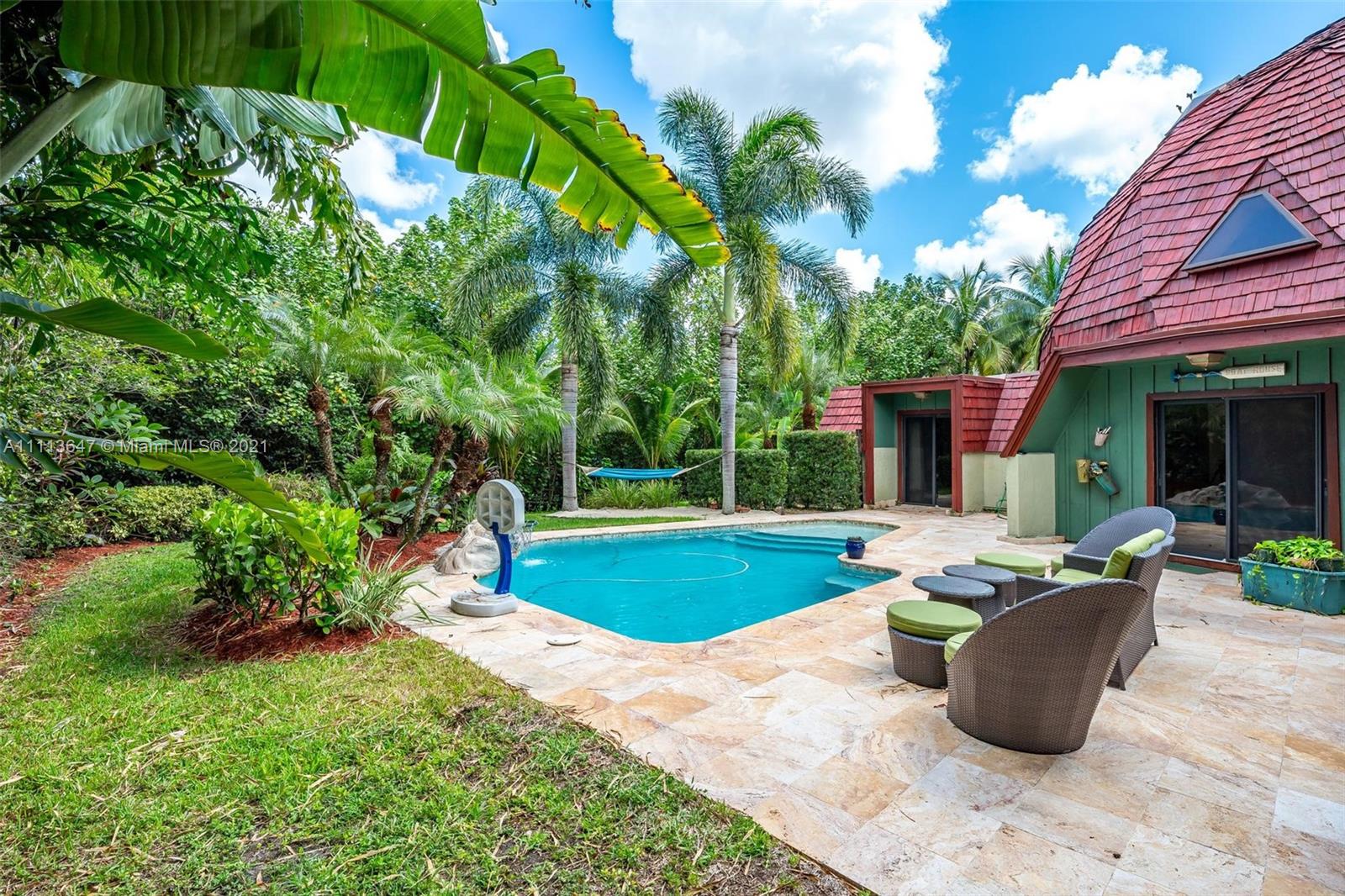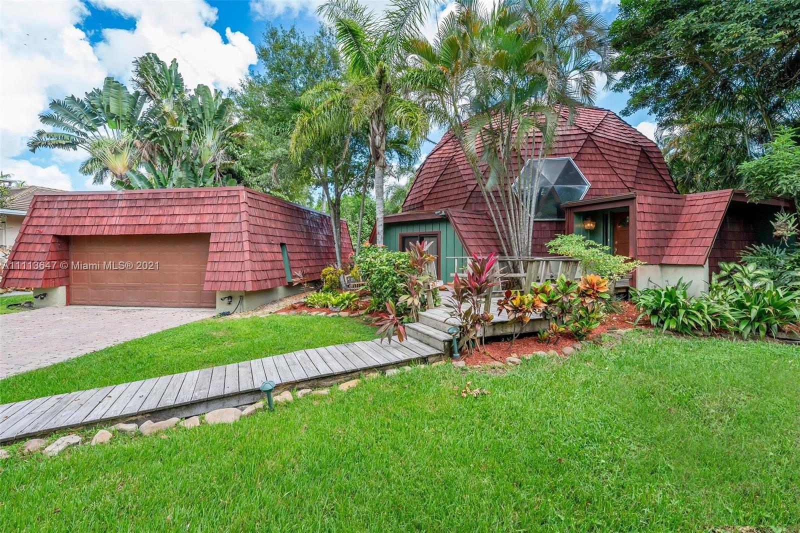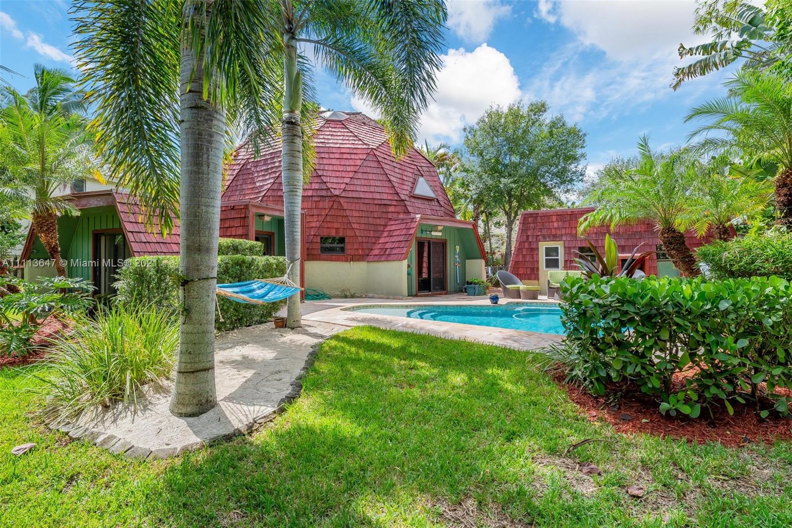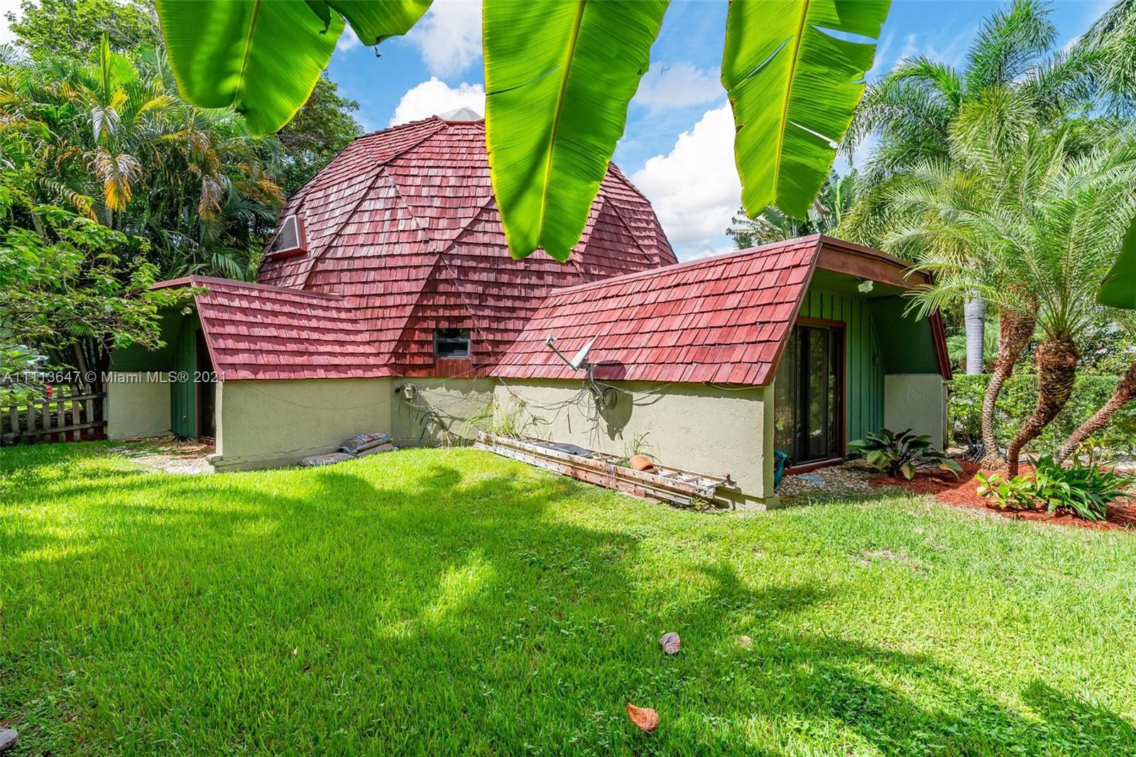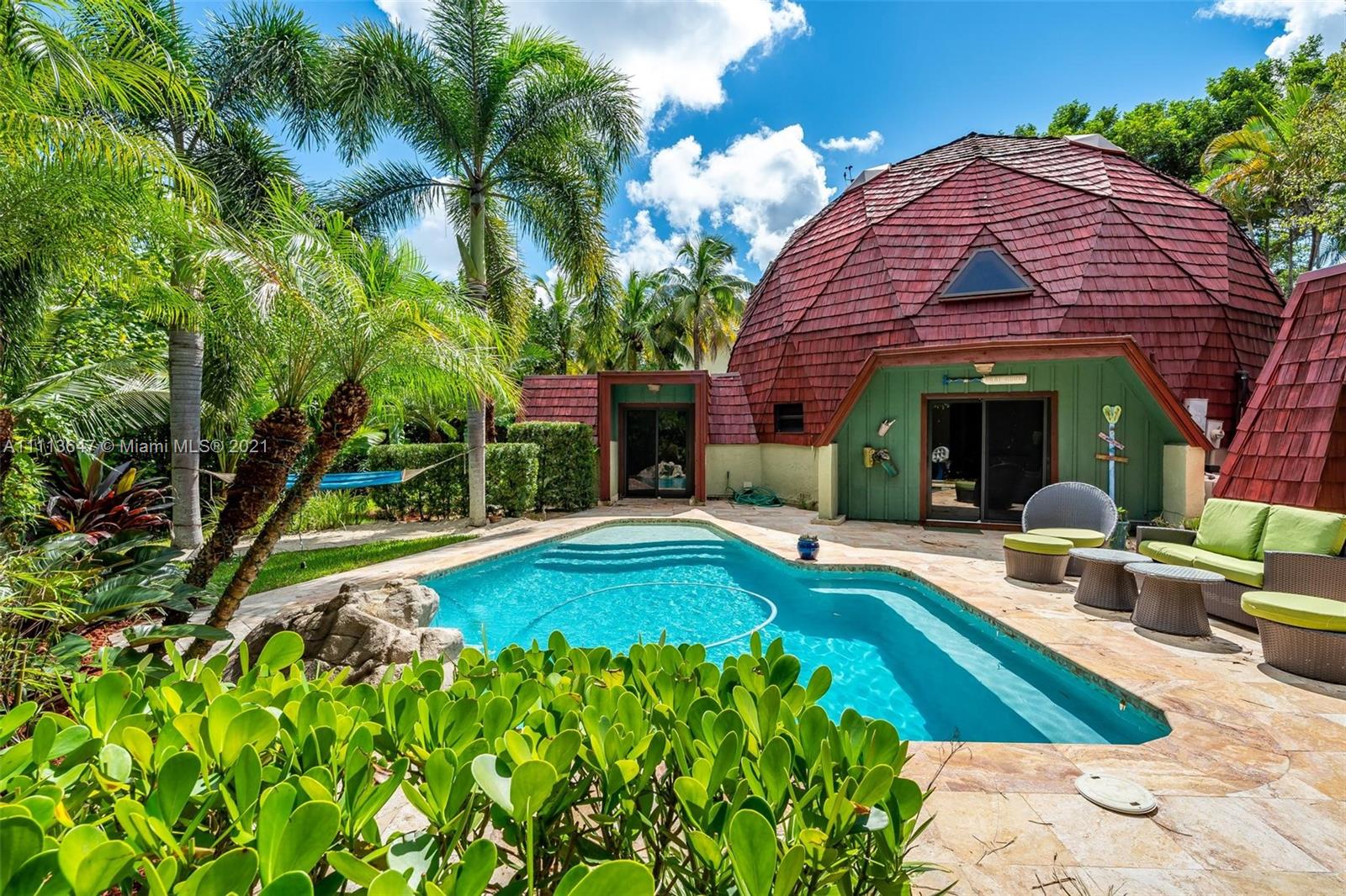 This whimsical home located in River Landings, a desirable private gated community made up of 19 truly custom homes on a street covered by beautiful live oak trees and surrounded by native palms. The community features a private riverfront Marina and Clubhouse with no fixed bridges and ocean access. This residence is a one-of-a-kind custom designed home inspired by Buckminster Fuller, American inventor, teacher, architect, author and designer. The home- a geodesic dome – was built in 1979 and comes with an assigned dock for a boat up to 40’ for a low association fee. The majestic entrance has a soaring ceiling at almost 3-stories high, a nicely pavered outdoor patio with a pool, 2-car garage is detached with laundry room. Private back yard abuts native trees and preserved mangroves.