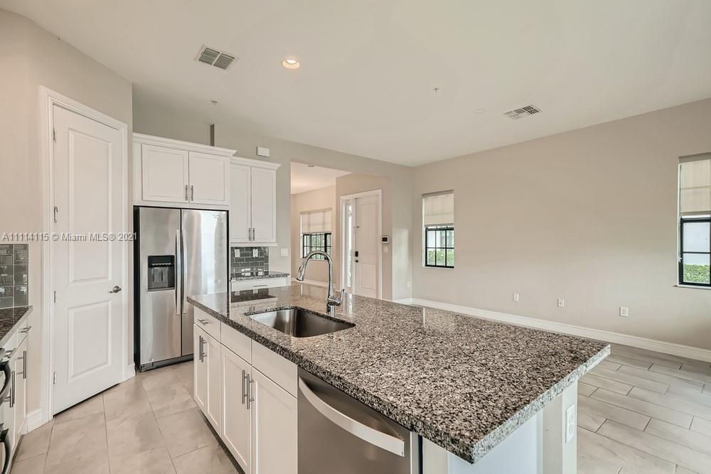 This stunning 3 bedroom, 2.5 bathroom townhome is located in the desirable Raintree Townhome Community! Enter the spacious living room that opens into the dining room and large kitchen! The kitchen offers an island, stainless steel appliances, and a pantry, a home chef's dream. You will love the patio with a great view of the lake, perfect for enjoying your morning coffee. The primary bedroom is spacious with plenty of room for a sitting area, a balcony with a lake view, two sizable closets, an en-suite bathroom with a double sink vanity, and a soaking tub. The gated community boasts a gym and pool. The home is conveniently located near eateries, shopping, schools, parks, and easy access to the Florida Turnpike. Do not miss the opportunity to see this impressive home!