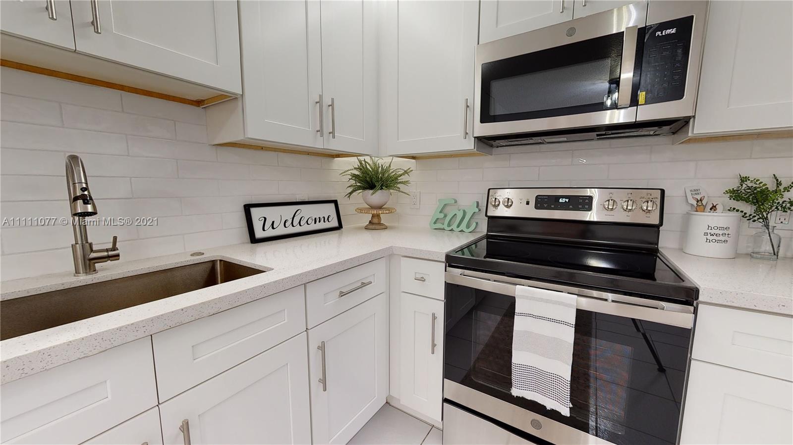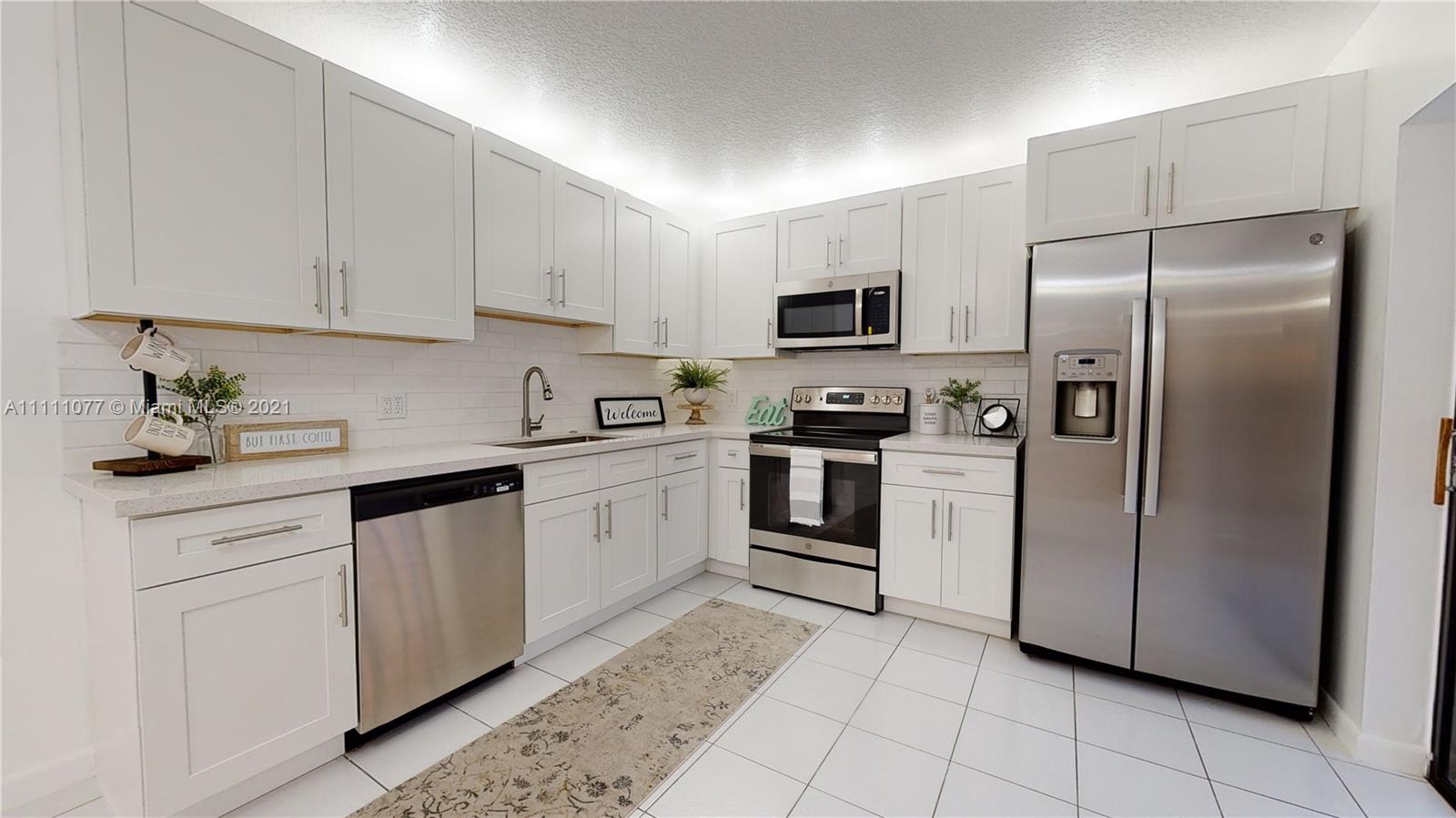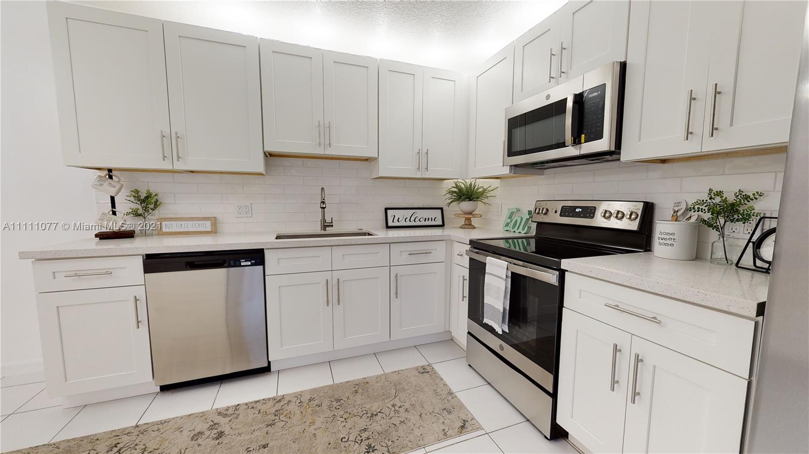 This 2 Bed 2.5 bath townhouse is a show stopper with its large screened in private, spacious patio that’s perfect for relaxing, family gatherings and entertaining. Only a few units in the community have this special feature! The interior has been beautifully updated with an all new kitchen including quartz countertops, shaker cabinets, tile backsplash, GE SS appliances. BEAUTIFUL bathrooms with new quartz vanities, toilets, mirrors, sinks & faucets. Freshly painted throughout. New 2021 A/C. Walking distance to community pool, basketball & tennis courts, Biking & jogging area. Two assigned parking spaces.