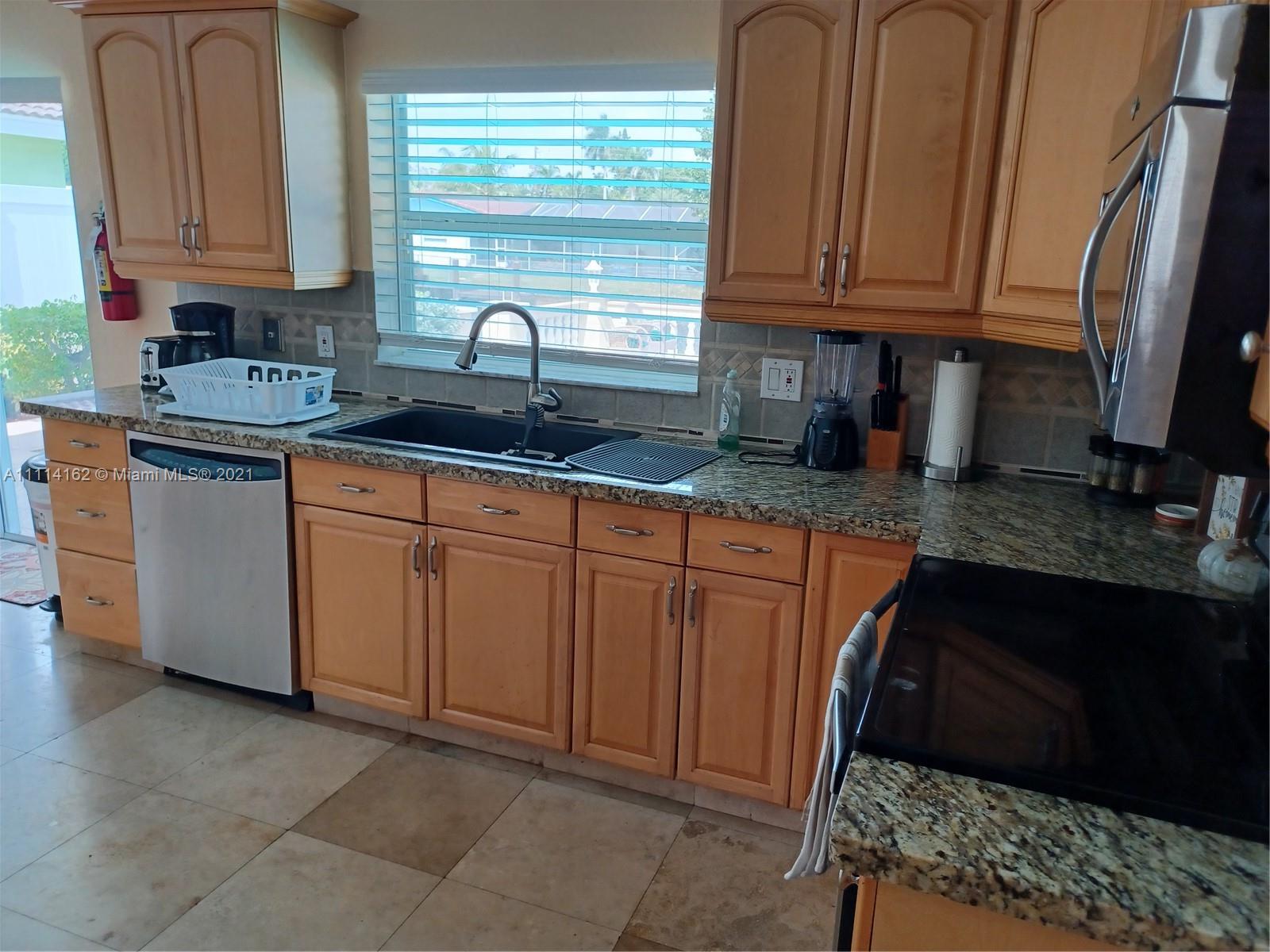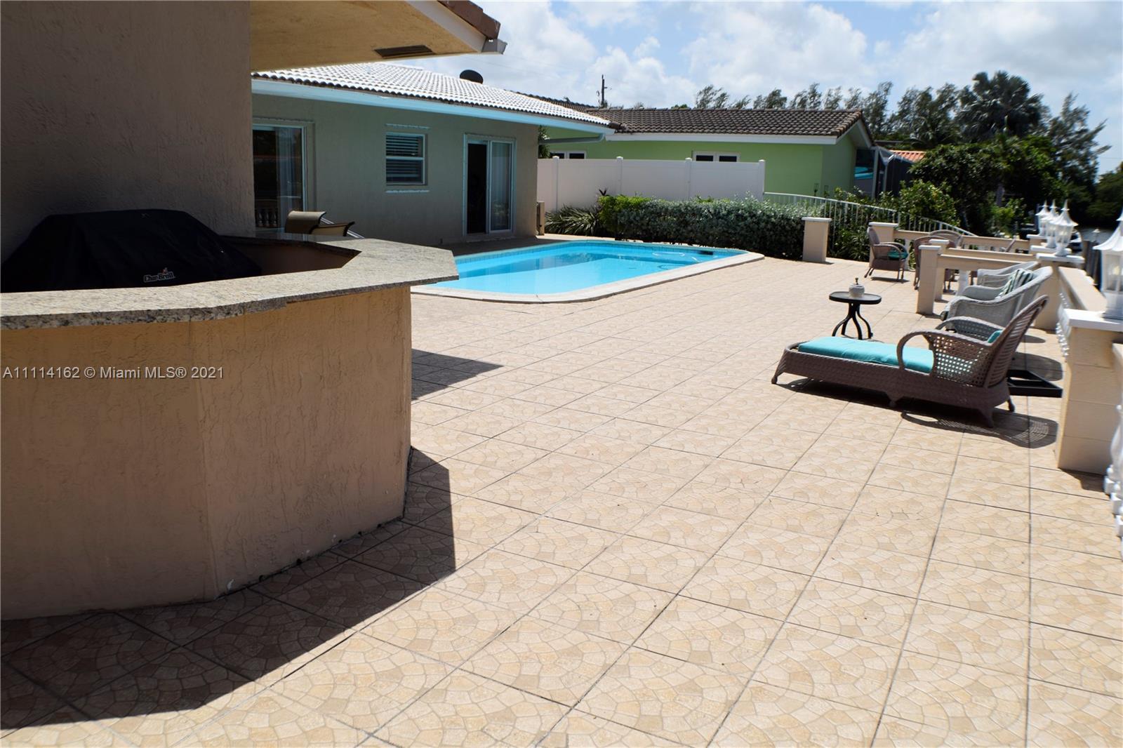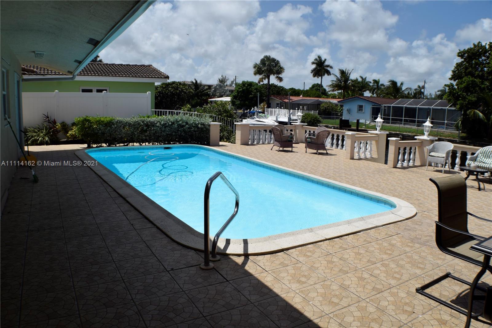 Executive ocean access waterfront home with 80'+ dock and fabulous 1,500 Sq. Ft concrete patio, pool with brand new oversize heater, separate BBQ area with granite counters, slip resistant tile, outdoor lighting and no rust, no wood long lasting dock with electric and water. Interior is just as nice. Upgraded kitchen, maple cabinets, granite counters, S/S appliances, separate laundry room, travertine marble floors in living/dining/kitchen; mahogany wood floors in main bedroom, bay window in living room, marble and wood beam ceiling in main bath, upgraded vanities, dual shower with seat, huge walk in closet. New 5 ton A/C with all new ducting, large two car garage. Impeccably maintained with full inspection report available with offer. Move in ready. Celebrate the holidays in your new home!