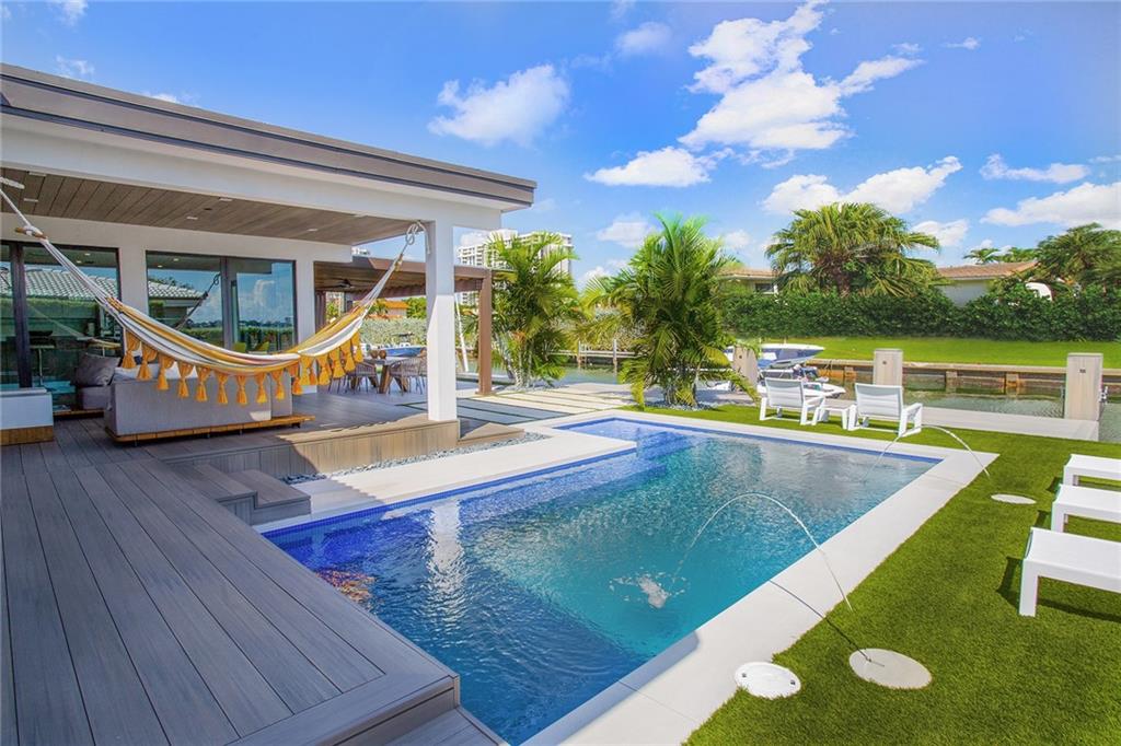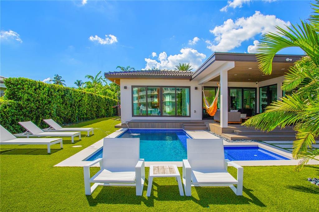 Move into this stunning contemporary boaters dream residence on a rare cul-de-sac lot with spectacular sunrise views from Biscayne Bay & vast intercoastal views throughout home. This 3 bedroom 3.5 bathroom masterpiece was designed to perfection by a renown architect & brilliant outdoor spaces by Luxapatio. No detail was missed with generous entertaining spaces both indoor and out.Lounge pool has 9 jets & smart aqualink system. Custom built dock has 75 Ft of water frontage equipped to dock a 50 Ft yacht. Astonishing Imported front door, 24X48 Italian porcelain floors throughout,Spaniard kitchen cabinets & huge porcelain Island, Viking appliances, Lynx outdoor kitchen, Custom aluminum Pergola, Indoor & outdoor LED lighting. Make this resort style dream home yours today. Sunset views included