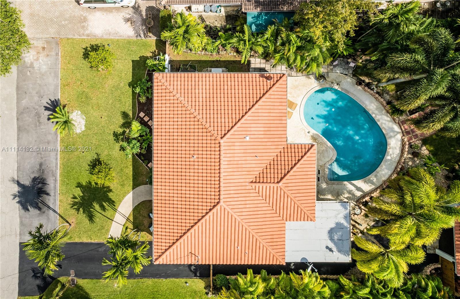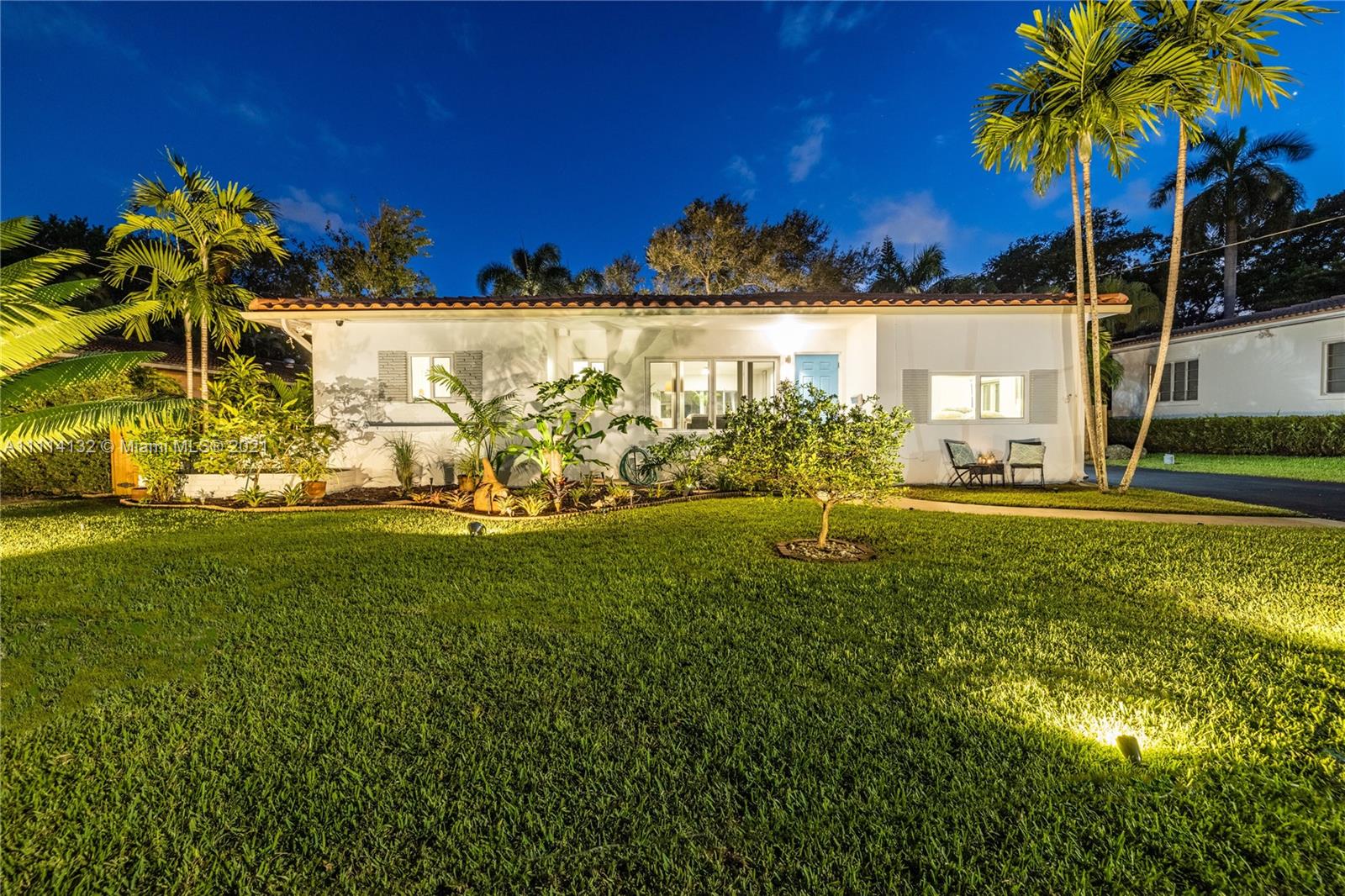 Welcome to Tropicool! You’ll feel like you’re in the Keys on vacation in this hidden tropical treasure mid-mod pool home. Enjoy spacious and flexible open flow living, dining, media room and bright eat-in kitchen that opens to an elevated, covered convertible veranda with built-in grill and secluded “Hemingway Speakeasy Bar” to enjoy your favorite cocktails (made with papaya, mango, starfruit, limes and lemons that grow here!) Great space to play, relax, dine and entertain with family and friends in the glistening boomerang pool and on the grand “aloha deck.” Bonuses: new roof; impact windows-doors; and a detached rear garage that could serve as a cabana bungalow— all on a large, lush lot that feels like a botanical garden on a quiet cul-de-sac! Jump in and soak in the cool… Tropicool!