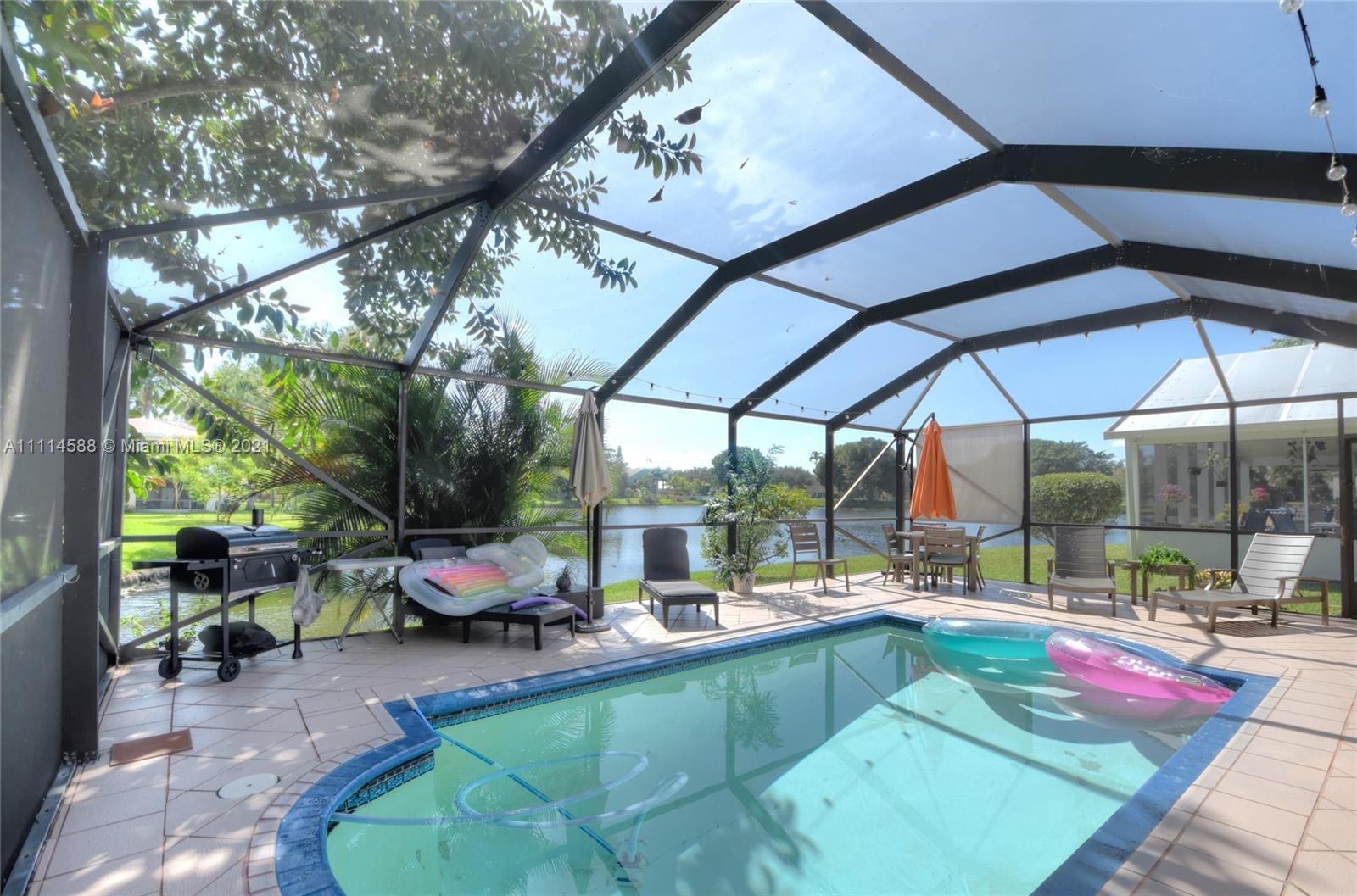 IMMACULATE LAKE VIEWS from This PERFECTLY-MAINTAINED 2/2 Pool Home in the Heart of Plantation. LARGEST CARPORT IN THE NEIGHBORHOOD leads up to a Garage. Beautiful Screen-In Pool area is Private and has SWEEPING lake views at The Same Time. TWO WALK-IN CLOSETS, Skylights, Updates throughout the home. Spacious Bonus Room can be Used for Dining, Office, Playroom. Open Living Area with Vaulted Ceilings, Recessed Lighting, Spacious Kitchen. New Paint Inside and Out! Updated Master Bath with Dual Sinks. Carport can Accommodate 4+ Cars! PERFECT Pool for Relaxing With The Benefits of Being MINUTES AWAY from Shopping, Restaurants, Highways! TONS of GREEN SPACE in the yard, Beautiful Trees for Shade and Relaxation. MUST-SEE TROPICAL POOL HOME!!