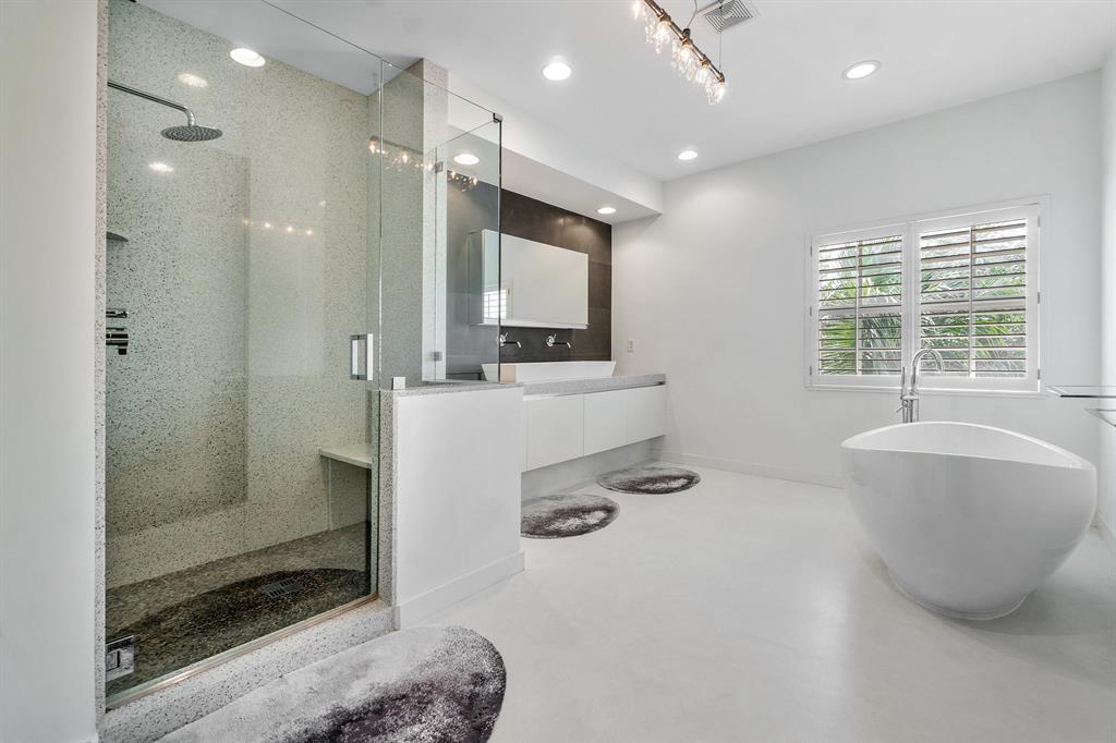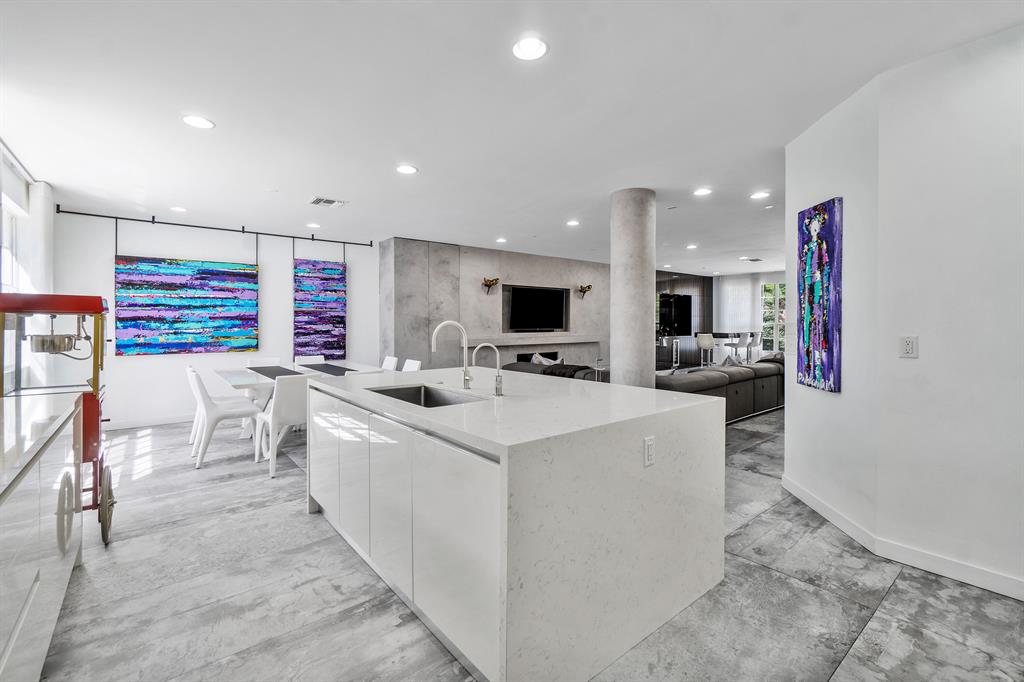 Open concept and completely renovated Bella Vita 3 bedroom, 3 1/2 bath townhome nestled in the quiet southeast corner of Trieste at Boca. Trieste is a 109-townhome community in east Boca with 24/7 gated and guarded security and close proximity to shops, restaurants, the beach, and great schools.The three-story townhome features private elevator access to the en suite master and mini master on the top floor. Both suites have large California built out closets, quartz counter tops, and white lacquer cabinets. The master bath has dual sinks and a freestanding soaking tub.This elegant home has been updated with porcelain floors, custom built-in bar with a 15 bottle Whynter wine cooler, and a concrete feature wall with a gas fireplace. There is ample storage in the chef's kitchen....