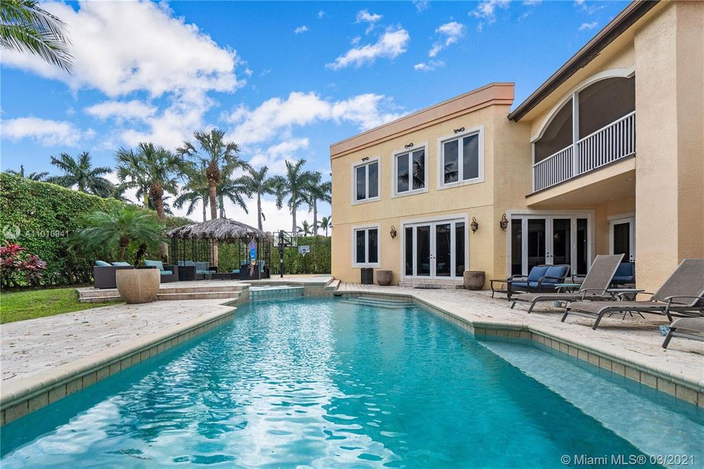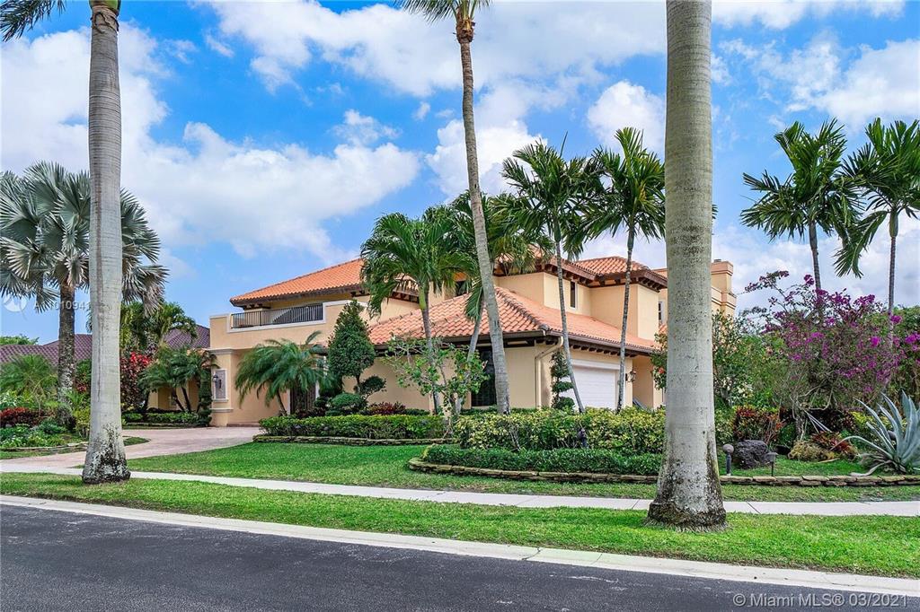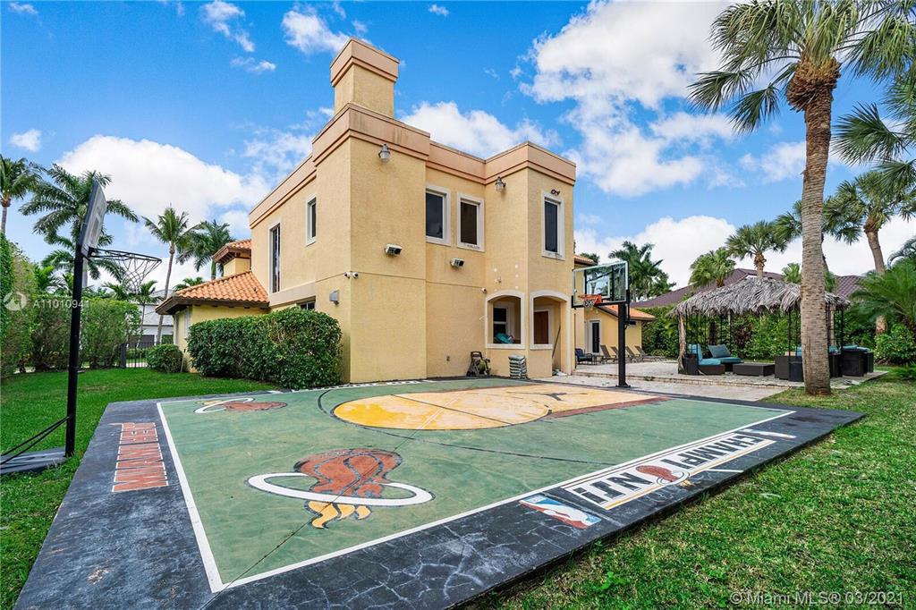 Spectacular 7 brs home on oversized corner lot, expansive chefs kitchen with two islands. Wolf/Subzero appliances. Three car attached garage. Theater room with recliner chairs. Master bedroom downstairs with large custom closets. Impact windows throughout. Outside features include heated pool, custom basketball court, built in grills with wet bar. Water purifying system. The lush landscaping provides complete privacy.