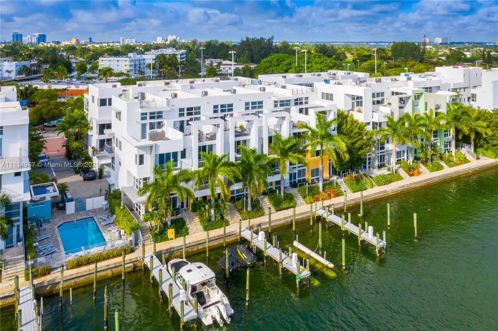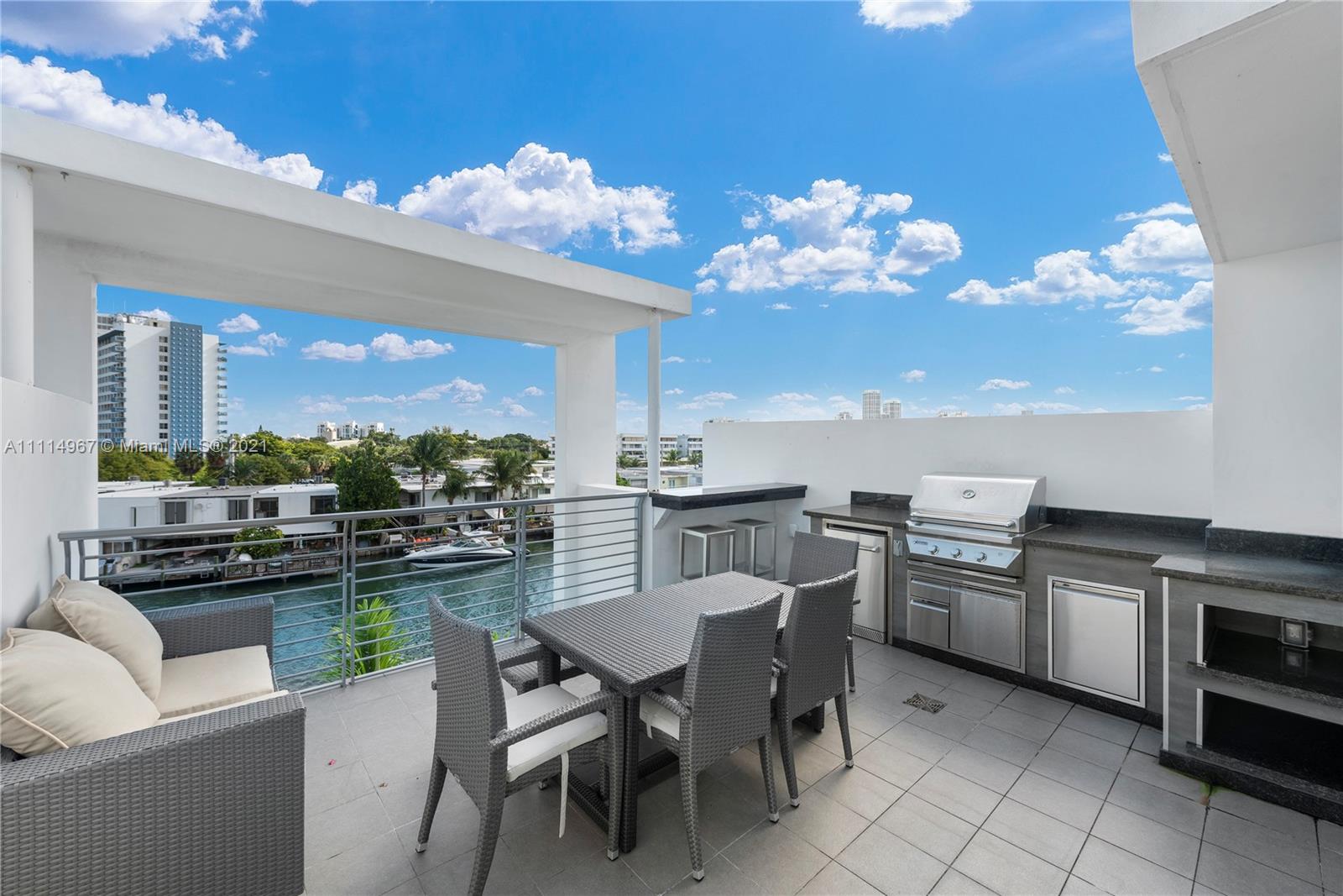 Live the Miami dream in this beautiful 4 story waterfront townhouse. Located in Iris On The Bay featuring 4 bedrooms with private balconies, 4.5 bathrooms, private elevator, modern European kitchen, laundry room, rooftop terrace with outdoor kitchen, and spacious 2 car garage. Water access is only within a few steps from your door to the dock for all your boating and water sports needs. The bedrooms are well laid out and split with the master suite on the 4th floor. The private elevator provides amazing convenience for all floors within the home. The property is located a few blocks from beach, across from normandy golf course, tennis courts, children's playground, soccer field, restaurants, and shopping.