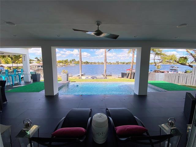 Beautiful house in the desired Palm Springs North. Tastefully remodeled, everything is top of the line. Impact windows and doors, two high efficiency central A/C units. All bedrooms have a bathroom. Heated infinity pool with therapy jets and a lighted waterfall overlooking the lake. An outdoor bar and gas BBQ for entertaining. A wood dock with a boat ramp for your boat or Jet ski's which are allowed in your lake. This house is completely set up with all the bells and whistles your looking for. Your own tropical paradise.