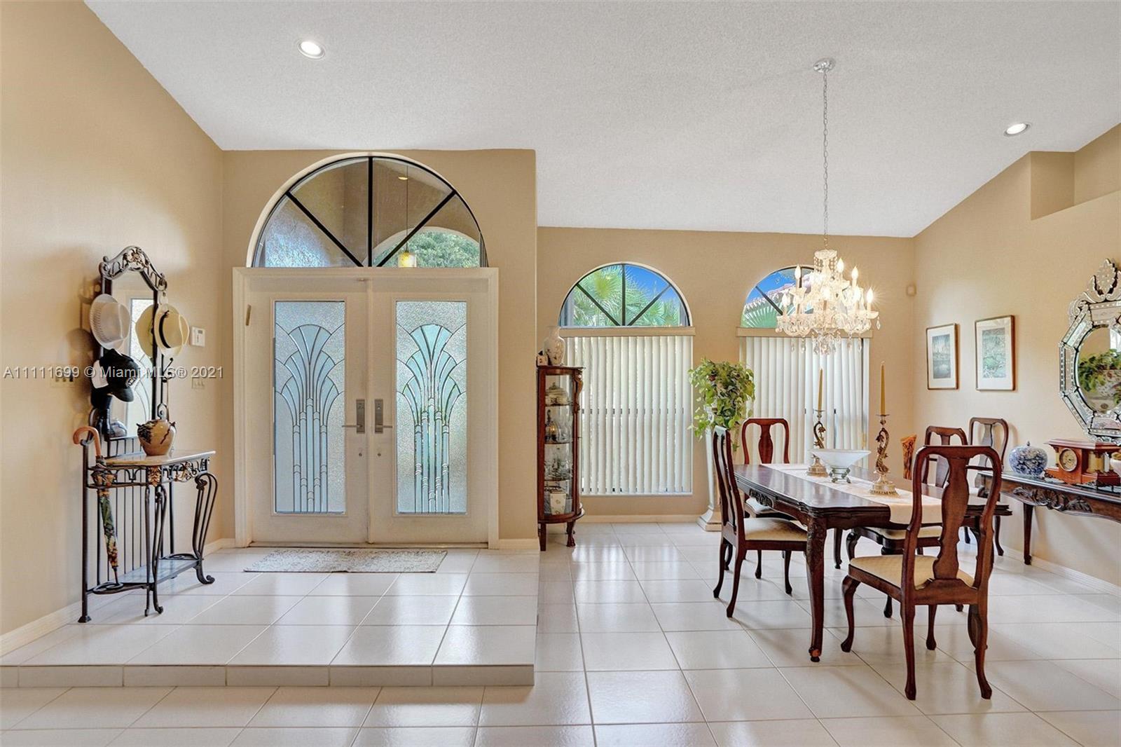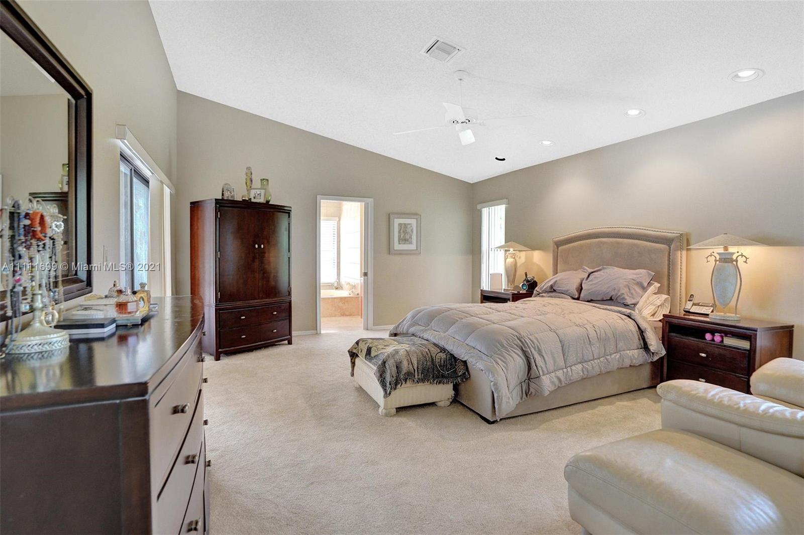 Welcome home to this gem situated on an oversized lot in the desirable Pine Ridge! Featuring an expansive circular stamped concrete driveway, lush yard & landscaping, modern updated kitchen, high-end $12k appliance package, eat-in kitchen & Bar height seating, updated master bath with frameless glass shower & private oasis patio off the shower, new laminate flooring, recessed lighting throughout, home water purification system, Jack & Jill bath, central vacuum & much more! Have peace of mind during hurricane season with full accordion shutters & the convenience of a shutter-enclosed patio for storage during a storm. Enjoy hosting poolside in your spacious backyard with a beautiful large swimming pool, screen enclosure, wet bar, elevated pool deck & brand new pool pump! Do not miss this!