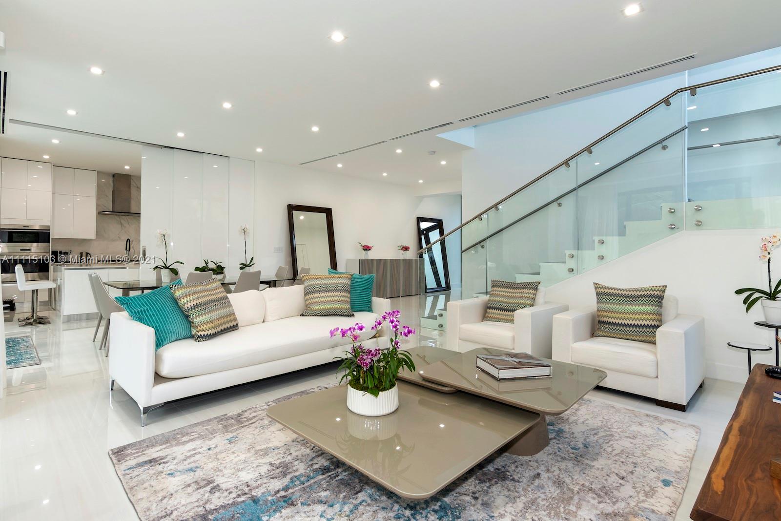 This modern architectural masterpiece w/ soaring ceilings & views of the sparkling pool greet you as you enter this magnificent 5 BD with en suite baths plus 2 half baths. The abundance of natural light throughout create a bright & tropical ambiance w/ oversized sliding hurricane impact doors which frame the open kitchen & living area. Chef’s kitchen features top of the line Sub Zero & Wolf appliances, custom cabinetry and a unique sliding door separating the working areas from the rest of the house. Master suite w/ custom walk-in closet & luxurious marble spa-like bathroom. The lushly landscaped backyard w/ separate cabana area & cabana bathroom, large covered patio & pool. Automated curtains, security cameras and a 2 car garage. Live in your own private oasis in the heart of Miami Beach.