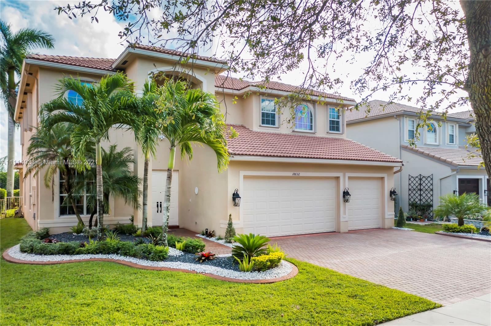 BEAUTIFUL, HIGHLY SOUGHT AFTER MARIELLA MODEL IN SUNSET LAKES FEATURES A GRAND MODERN STAIRCASE W CUSTOM WROUGHT IRON RAILING. SPACIOUS, OPEN FLOOR PLAN, FRESHLY PAINTED INTERIOR W WARM NEUTRAL COLORS. BEDROOM & FULL BATH ON FIRST FLOOR. 2 MASTER SUITES W/ WALK IN CLOSETS. LARGE GOURMET KITCHEN W GRANITE COUNTERTOPS, & REAL WOOD CABINETS. ACCORDION SHUTTERS THROUGHOUT SECOND FLOOR, PROFESSIONAL LANDSCAPING. ENJOY THE BACKYARD WHICH IS COMPLETELY PRIVATE W NO NEIGHBORS BEHIND. OVERSIZED CUSTOM POOL W HAYWARD HEATING PUMP. EXPANSIVE COVERED SITTING AREA IS PERFECT FOR ENTERTAINING. 24-HOUR GATED COMMUNITY WITH CLUBHOUSE, POOL, GYM, CHILDREN’S PLAYGROUND AND WORLD-CLASS TENNIS CENTER. SHOWINGS WILL START MONDAY 10/25 TEXT LISTING AGENT.
