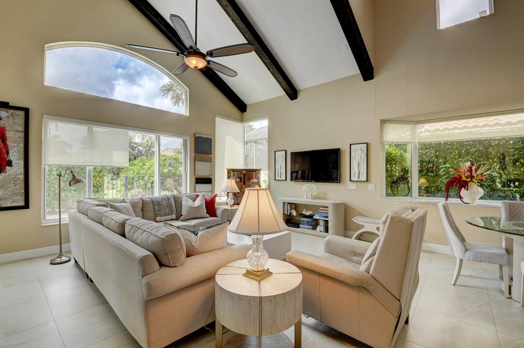 This breathtaking townhome is located within the exclusive award-winning Broken Sound Country Club. Remodeled in 2017, this 3-bedroom 2.5 bath home features the master bedroom down with beautiful wood flooring, custom closets and a clawfoot soaking tub in the master bathroom. The open concept living room and kitchen feature high volume ceilings, 24X24 tiles, lots of natural light, fresh paint, impact windows & French doors, remote blinds, beautiful wood beams and quartz countertops. Upstairs you will find 2 guest suites, wood flooring, an open loft/office area and a private balcony. Relax out back in your own tropical paradise that features a heated pool with spa and a custom waterfall all powered with new automated equipment. Act now it won't last long! Mandatory membership $80k-$90k.