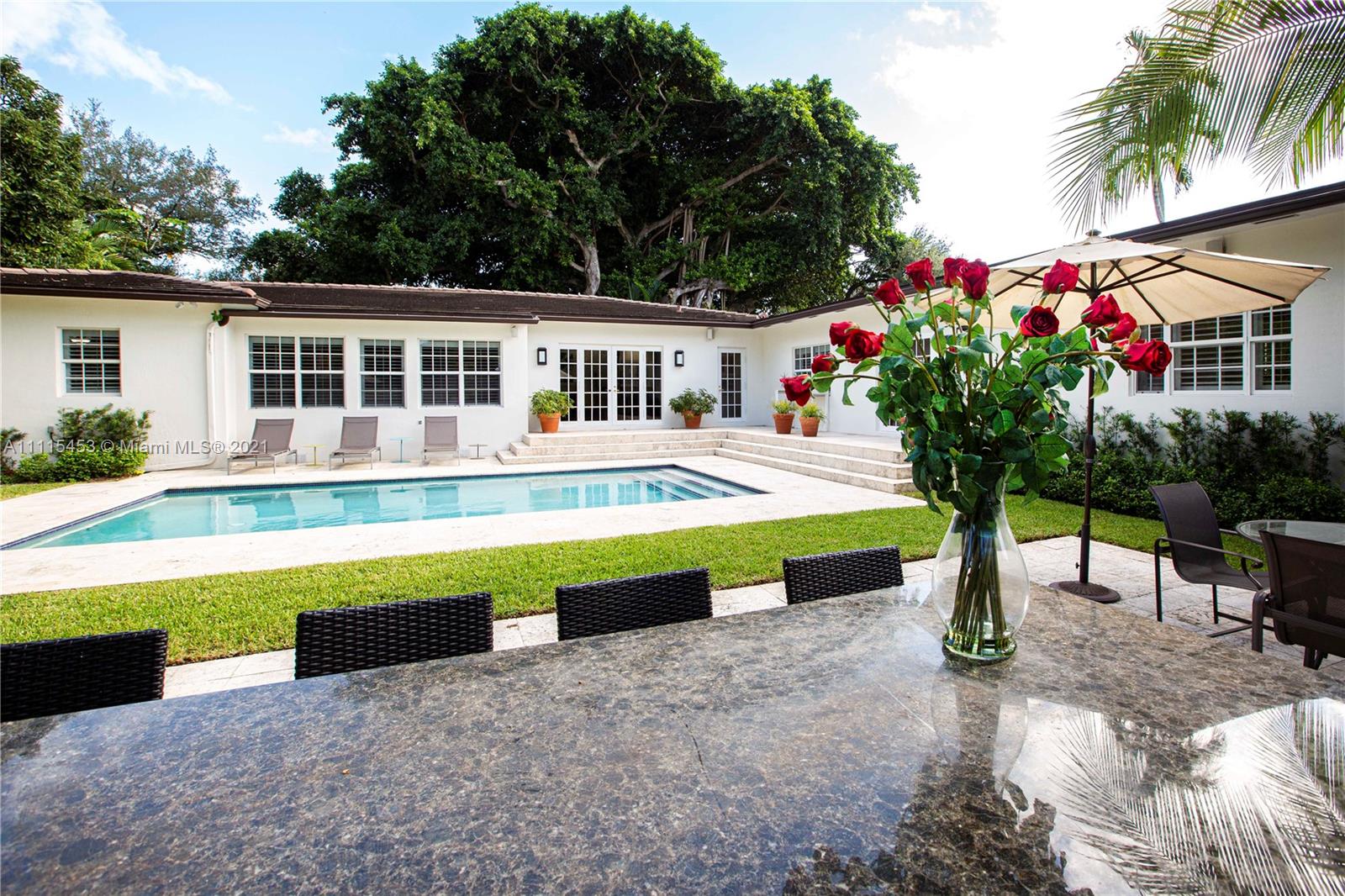 Spectacular Family home in Coral Gables Golden Triangle. Elegantly updated 4-bed 4-bath Split plan home with a large open kitchen w/french doors leading to ultra private large backyard, sprawling master suite with his and hers designer closets. Wood and marble floors, plantation shutters and impact windows and doors. Turn key with an amazing sparking pool w/grand patio area, complete with generous summer kitchen that’s perfect for entertaining. 12200 sqft lot, 2-car garage and Chicago brick circular driveway. This is the last home you’ll ever want or need!