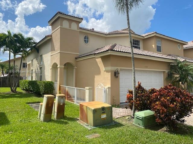 Las Cascadas is a premier gated community in luxurious Doral Florida. This home boasts 3 bedroom and 3 full bathrooms. 2 separate en suites on the 2nd floor. Porcelain Floors, Quartz countertops. Beautiful corner unit in prime location in Doral close to great schools, dog park, shopping centers and easy access to turnpike. 1 bedroom with 1 full bathroom downstairs, open kitchen, private backyard with covered overhang. Spacious layout, low HOA fees.