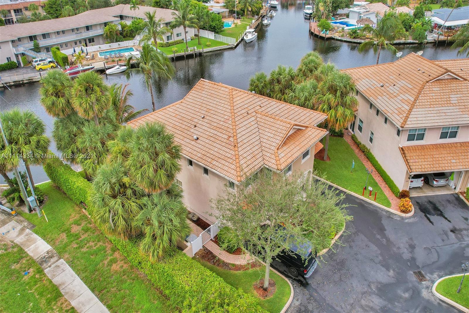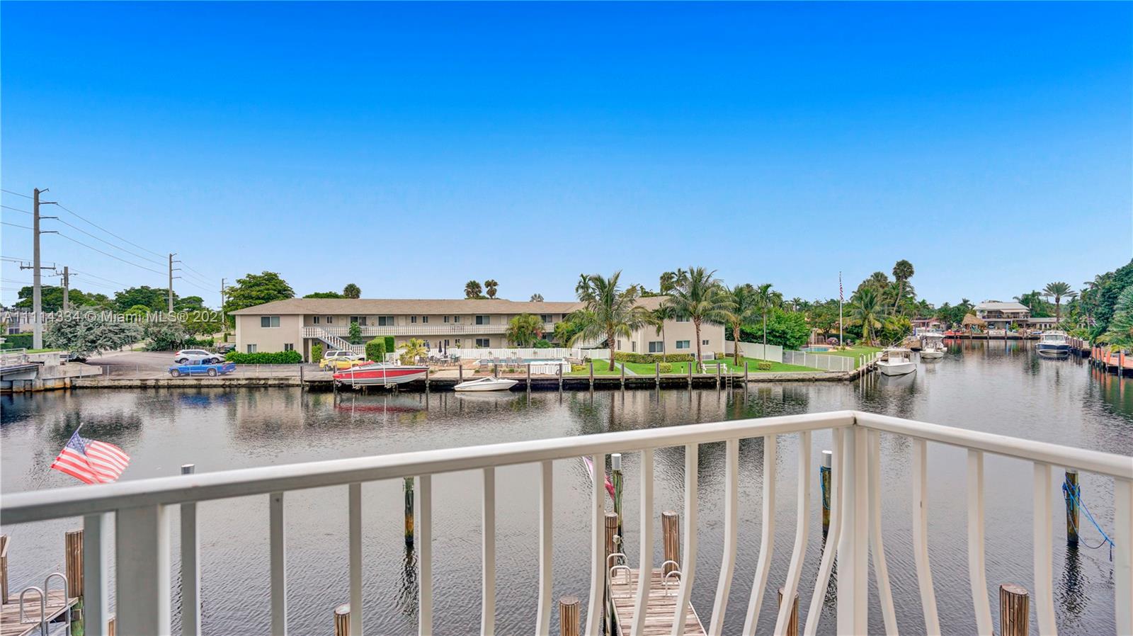 Cypress Bay Estates. Waterfront ocean access Gem! Gated community with private dock, one fixed bridge (US1) unit overlooking wide water canal with exclusive use boat slip directly off the back patio. Impact windows and doors. Fabulous master bedroom with balcony overlooking the intercoastal, master bath with shower and jacuzzi tub. Pet friendly! High ceilings, window treatments, wood cabinets with granite countertops, and stainless steel appliances. Very spacious 3/2.5 with full 1-car garage. Retractable awning on the back patio for the outdoor lounge area. Heated community pool steps away—minutes to Fort Lauderdale and beaches.