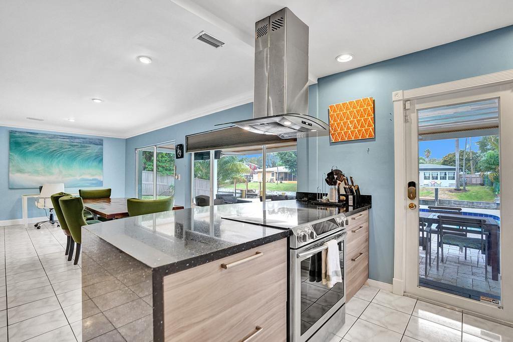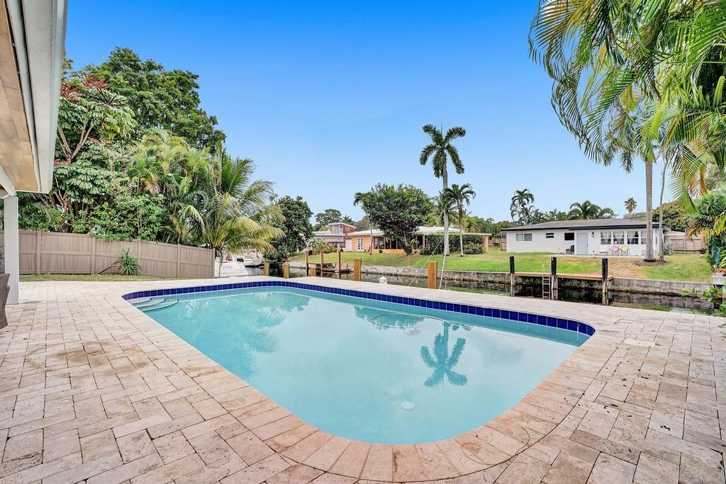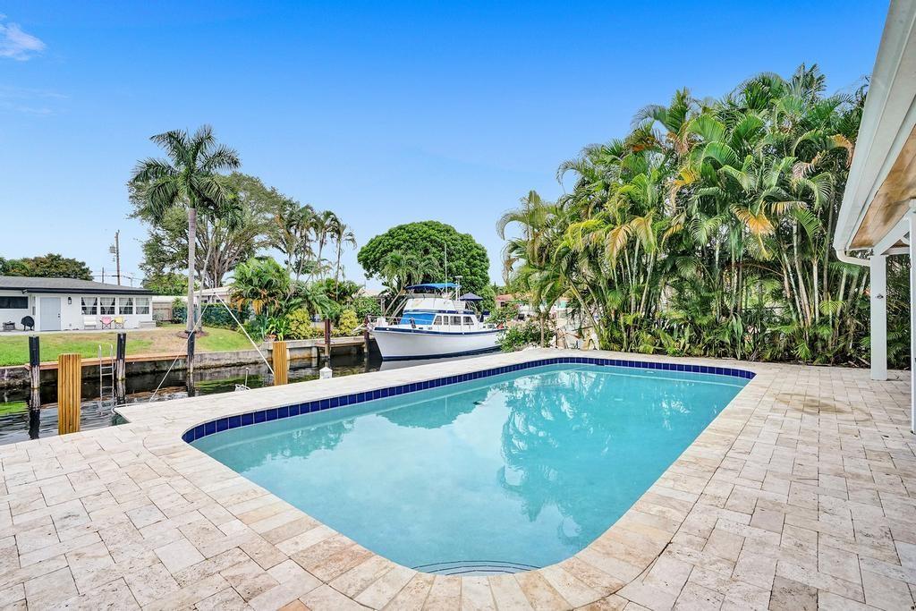 Absolutely stunning waterfront pool home in Flamingo Park! This property offers 70' of waterfront ocean access with no fixed bridges. The seawall and dock were redone in 2016. Enjoy tropical living at its finest with incredible indoor/outdoor living. The very private and fully fenced back yard boasts a large travertine deck, heated pool, covered sitting & dining area with incredible canal views. The interior features an updated open kitchen with s.s. appliances, contemporary laminate lacquer cabinetry & waterfall island top, neutral tile flooring throughout, high-end full home Marantz Sound System, smart home LED lighting, updated bathrooms, 2016 A/C and much more! Lots of large windows throughout flood the interior with natural light. This is the ideal home for the boating enthusiast!