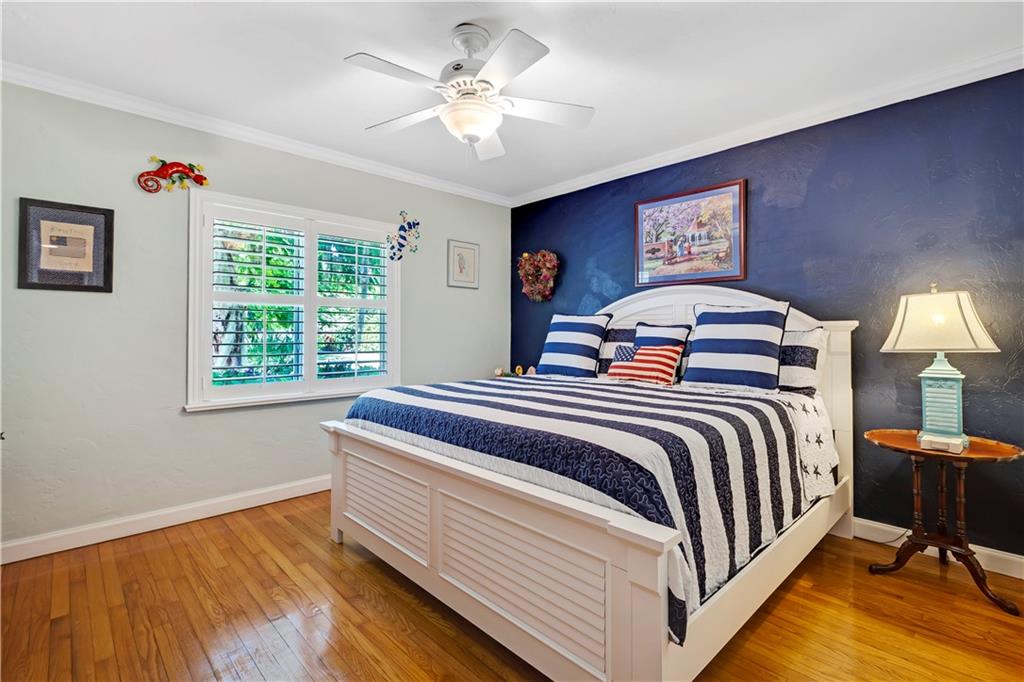 Welcome Home to Rio Vista, one of E. Fort Lauderdale's most coveted subdivisions. Warm, cozy, tranquil, updated are just a few of the adjectives to describe this quintessential residence. Mature landscaping with hanging Spanish moss sets the entry to a covered porch & original doorway. The living and dining room share warm wood flooring and a classic fireplace. The updated kitchen overlooks the breakfast area and opens onto a spacious family room with doorways that blend indoor and outdoor living spaces. The primary suite offers two walk-in closets and a bathroom complete with dual sinks, a separate shower & whirlpool spa. The 2nd bedroom is spacious in size & the 3rd bedroom with bathroom is currently used as a home office. A covered loggia overlooks the pool & garden. Sq ft from IMAPP