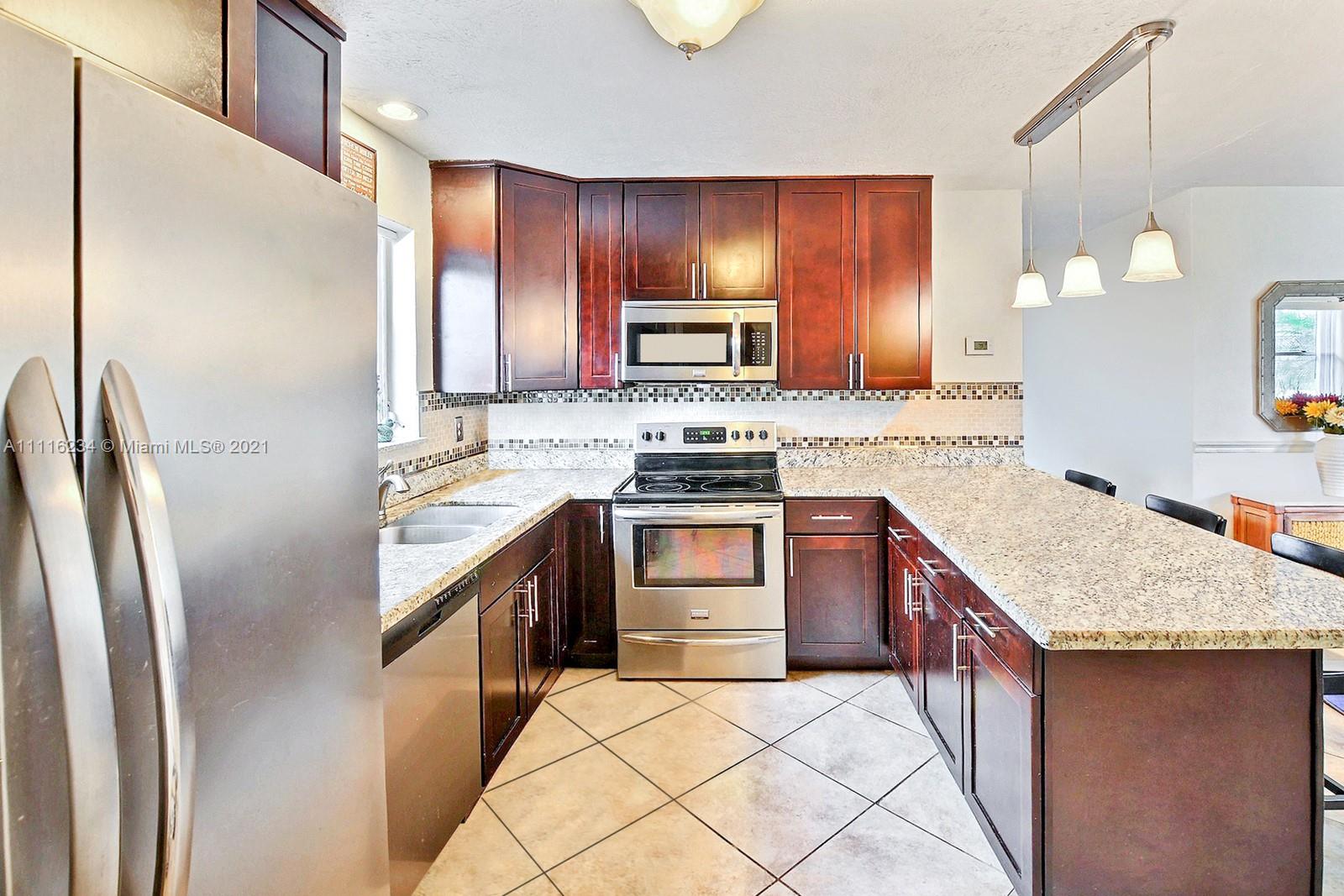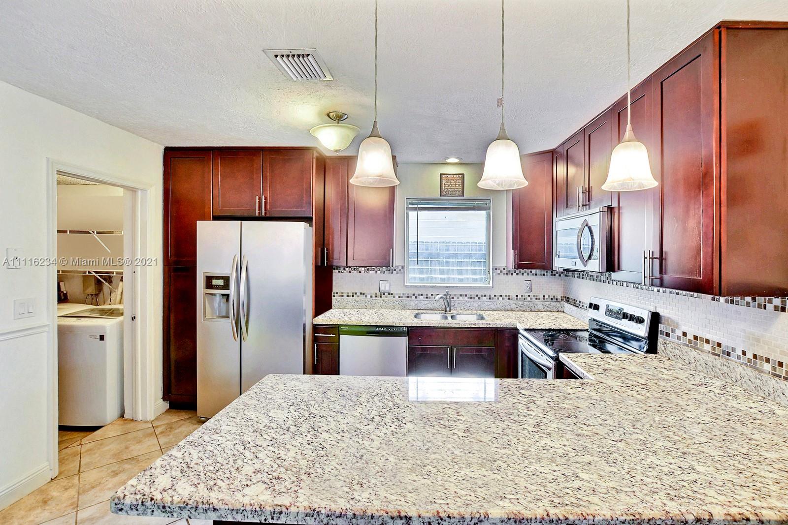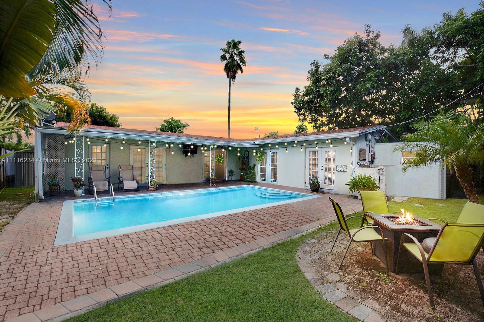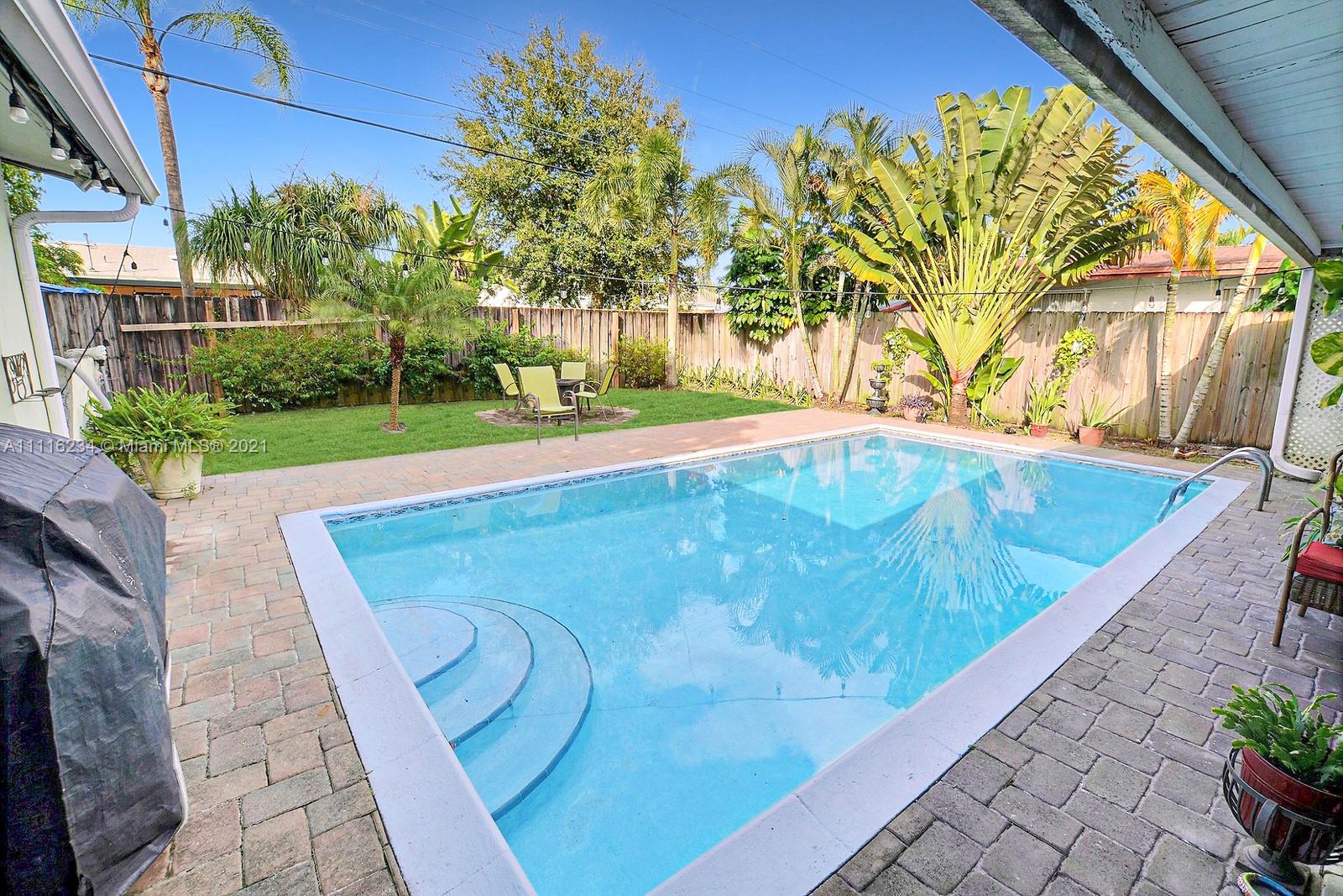 CHARMING 3 BED + FLEX/BONUS SPACE, 2 BATH POOL HOME HAS WELCOMING CURB APPEAL. PERFECT FLOOR PLAN TO ENJOY THE BEST OF SOUTH FLORIDA'S INDOOR/OUTDOOR LIVING LIFESTYLE, CHARMING FRENCH DOORS OPEN FROM THE LIVING AREAS TO THE POOL AREA. THE SPACIOUS OPEN KITCHEN OFFERS UPDATED CABINETS, GRANITE COUNTERS, STAINLESS STEEL APPLIANCES & PENINSULA WITH EAT IN NOOK. HOME FEATURES A MIX OF TASTEFUL LAMINATE AND TILE FLOORING THROUGHOUT. SPLIT FLOOR PLAN FOR PRIVACY. PRIMARY SUITE OFFERS AN ENSUITE BATH. FULLY FENCED AND PRIVATE YARD IS LINED BY TROPICAL PALM TREES TO PROVIDE A LOVELY POOLSIDE VIEW. ENJOY A DEDICATED INDOOR LAUNDRY ROOM. FABULOUS LOCATION IS MINUTES TO SHOPS, RESTAURANTS, THE TURNPIKE, HARD ROCK CASINO, AND A SHORT DRIVE TO THE BEACH. NEW ROOF 2020, NEW AC IS 2.5 YEARS OLD. NO HOA.