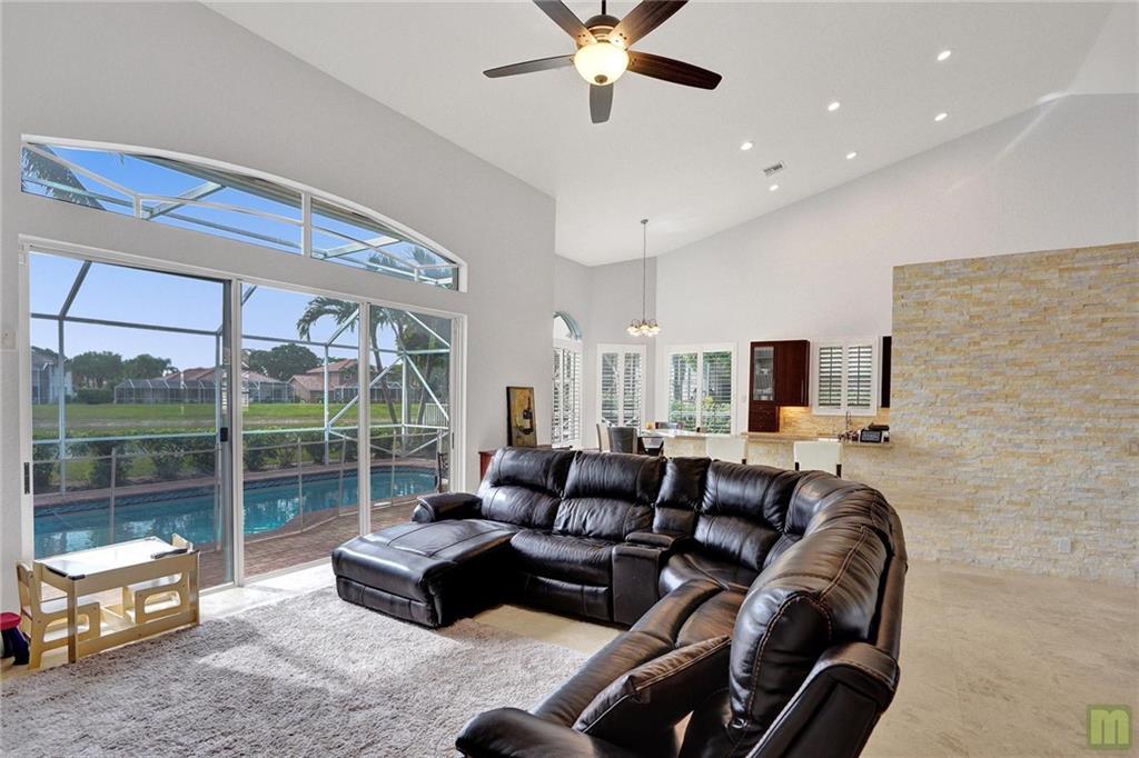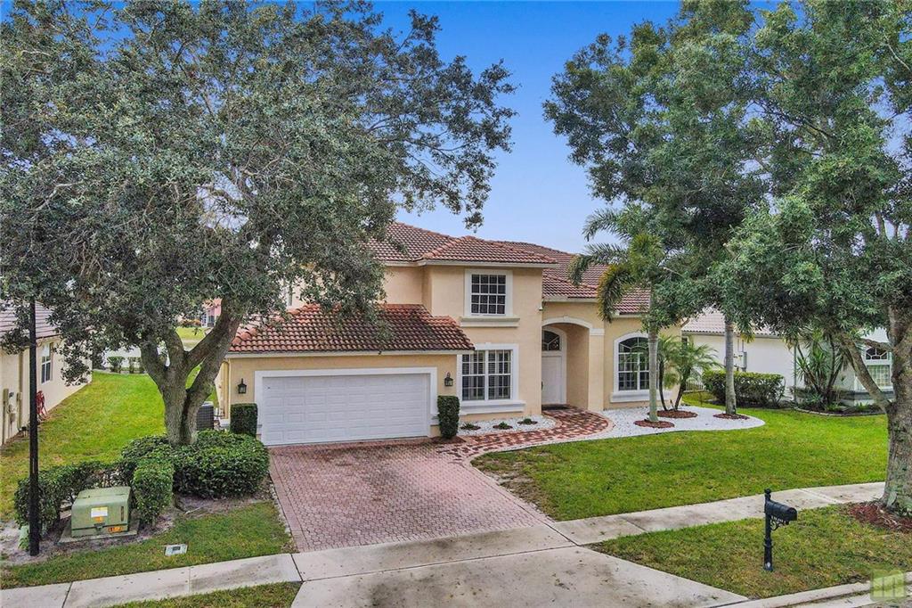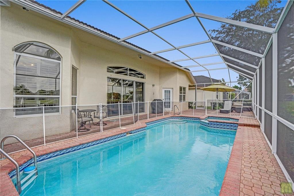 Don't miss this stunning 4 bedroom + Den, 2.5 bathroom home in West Boca. Huge master suite on the ground floor with dual walk-in closets, spa-like bathroom with steam shower, roman tub, dual vanities and private wc. There's also a 2nd bedroom on the ground floor that's perfect for a home office. Upstairs you'll find 3 more spacious bedrooms, a loft area and another full bathroom. Soaring ceilings show off the lower level with living room, family room and dining spaces, over-sized eat-in kitchen with stainless steel appliances, granite countertops, wine cooler and tons of storage. Out back, enjoy a fully-screened, private pool, built in jacuzzi and an amazing lake view. Low HOA of $306/mo. Quiet, well-maintained, gated community with clubhouse, community pool and tennis courts.