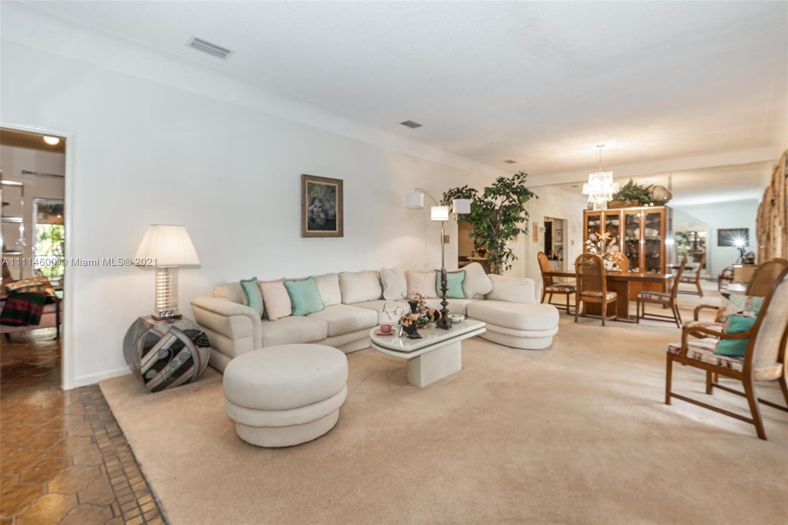 In original condition this is a rare 5 bedroom 3 bathroom home with a very large pool enclosed patio 59’ x 25’. The 2 car garage (now air conditioned) was converted to a hair styling salon and can be converted back. There is a large eat in kitchen, formal living and dining areas plus a family room and utility room. One of the bathrooms is ADA compliant with a roll-in shower. There are two cabana baths plus entry to the patio pool area from the master bedroom. Being sold STRICTLY AS-IS.