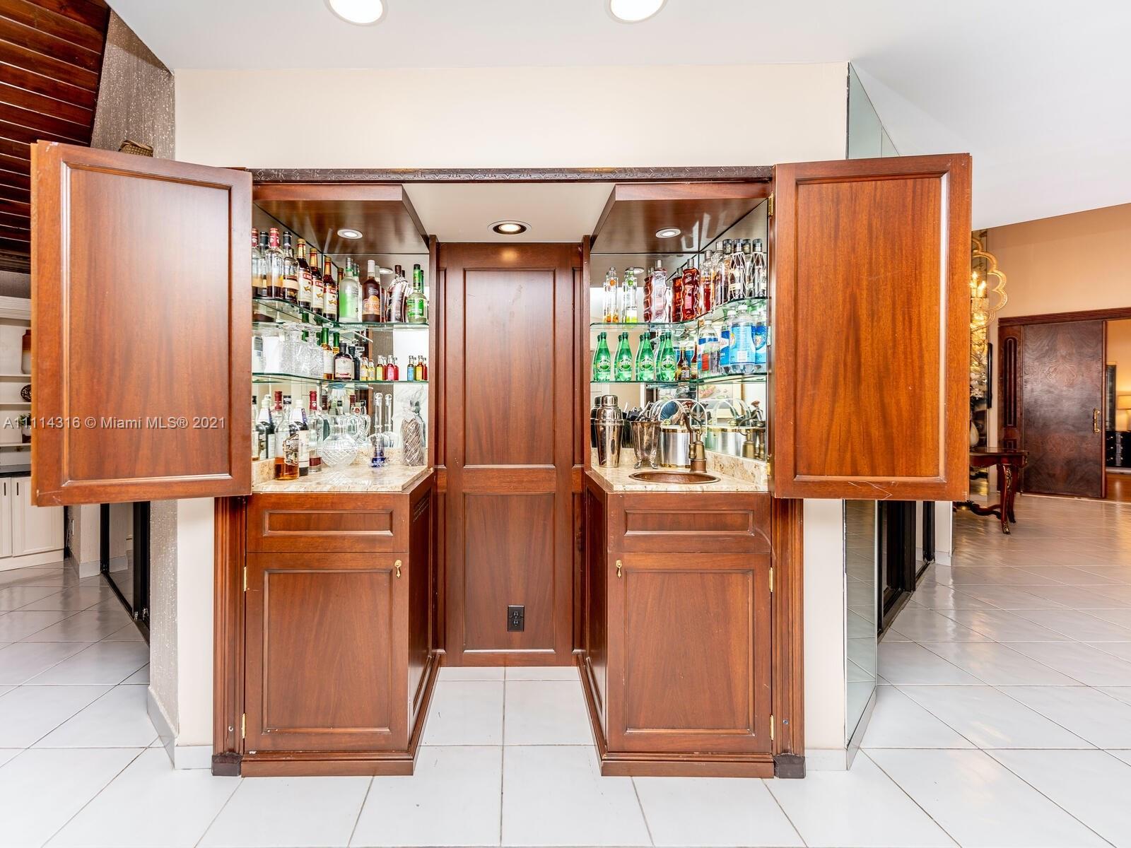 Unique & Spacious split-floor plan home nestled among the tree-lined streets of beautiful Maplewood Isle, a quite & private community of only 104 custom-built homes with 24/7 guard present at the gate. All 4 BD are downstairs, & each with en-suite BA. 2nd Floor is a loft with a walk-in closet. Primary BD has walk-in closets & a BA with dual sinks & separate shower/jetted tub. Remodeled kitchen with breakfast nook, SS appliances & wine cooler. Freezer & additional refrigerator are included. Family room features a real wood-burning fireplace. Front entrance leads to an open area with volume ceilings. This area includes a modern wet bar, living room and formal dining with a view of the patio/pool area that has a cabana BA & separate shower/dressing room. Washer & Dryer do not convey.