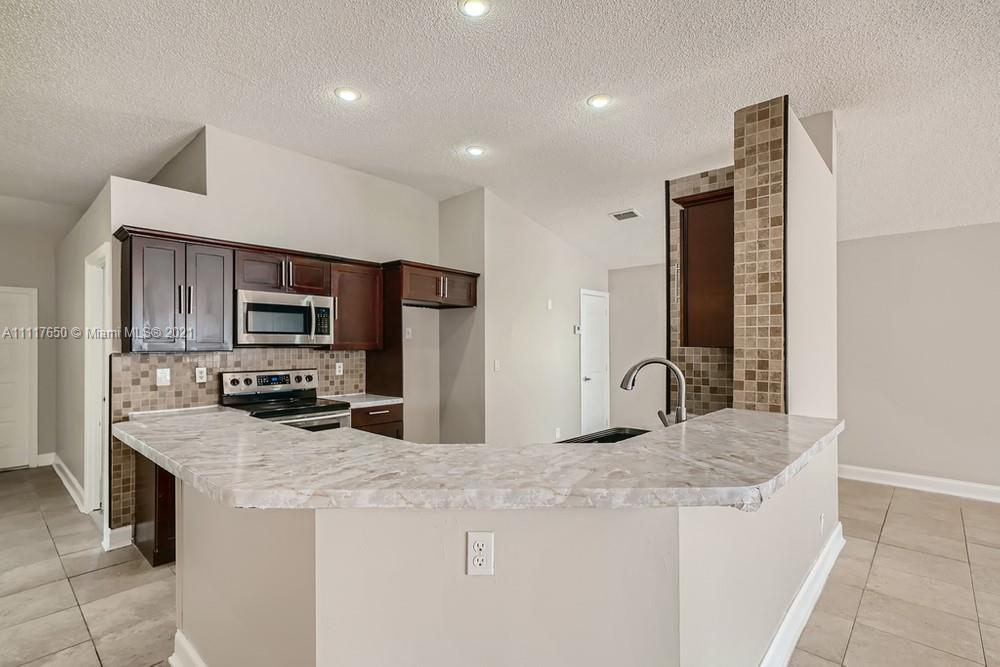 Location, location, location! This home is a must-see spectacular 3 bedroom, 2 bathroom house located in the fantastic Silver Lakes Community. Walk into the spacious living room, with excellent sleek flooring, that opens to the well-acquainted kitchen and dining room. The brilliant kitchen features a breakfast bar and stainless steel appliances. This home boasts a spacious primary bedroom with a large closet and a splendid en-suite bathroom. You will love spending time on the fantastic back patio enjoying the lake view. This home is minutes from the Florida Turnpike, the Silver Lakes Community Park, Chapel Trail Nature Preserve, shopping, eateries, parks, and schools. Do not miss the opportunity to see this impressive home!