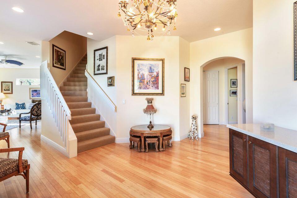 Stunning custom built home in the Southend, east of Olive and just a short distance to the Intracoastal Waterway. Designed to enjoy South Florida living at its best! Great for entertaining, indoor living flows seamlessly to the gorgeous outdoors. Covered porches and beautiful pool with fountains all surrounded by privacy wall. High ceilings, bamboo floors, open floor plan, hurricane impact windows & doors, formal dining room with tray ceiling and gorgeous kitchen. Custom cabinetry, Caesar stone counters, double ovens, 6 burner gas stove, 2 sinks, large pantry and plenty of counter seating. 2 large bedrooms downstairs. Master suite upsatirs plus den or 4th bedroom. Luxurious master bath, double vanity, tub and separate shower. Huge closets, lots of storage, over sized garage & generator!