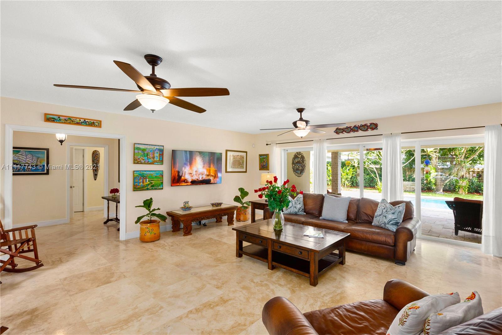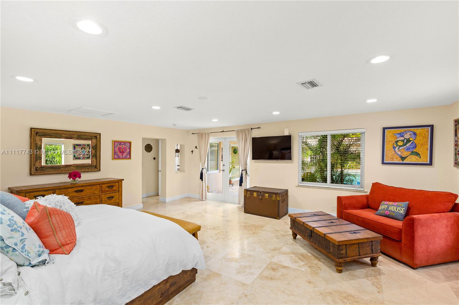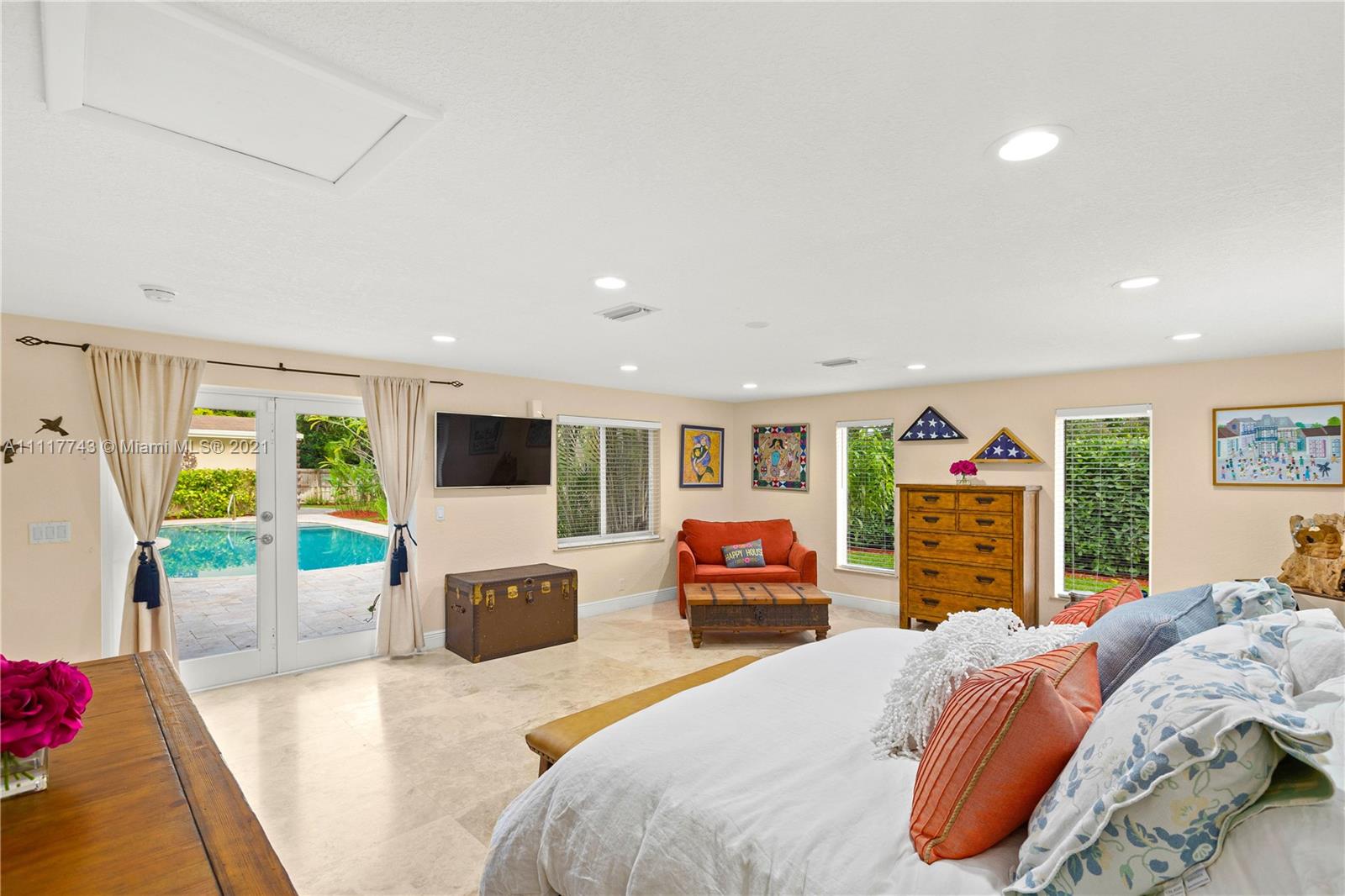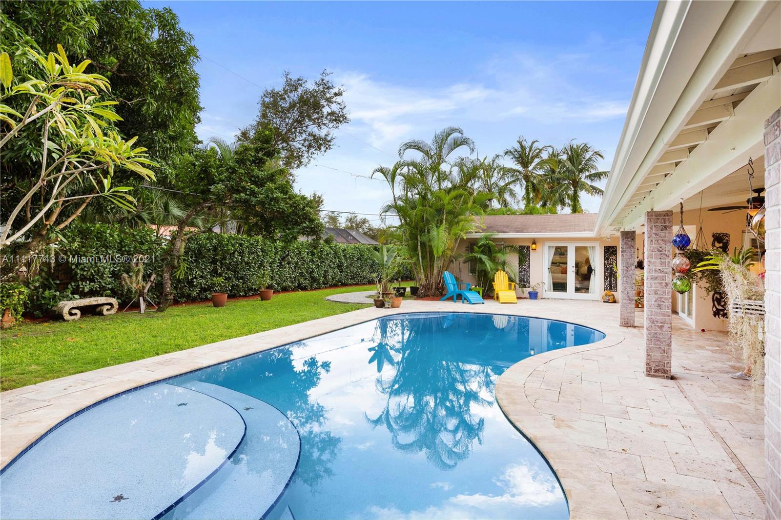 Spacious Pinecrest Retreat. 4-bedroom, 2.5 bath plus 1-1, guesthouse, built around a beautiful pool, patio and garden. Updated electrical and plumbing, travertine floors, impact windows and doors, and tremendous closet space throughout. This home offers beautiful spaces with relaxing natural light throughout. Large master bedroom suite overlooking the pool, updated kitchen with quartz countertops. Fabulous living and dining spaces with enormous sliding glass pocket doors that make the pool and living areas one. Gated with a two car garage, and plenty of room for a boat, RV, or both. This could easily be your forever home.