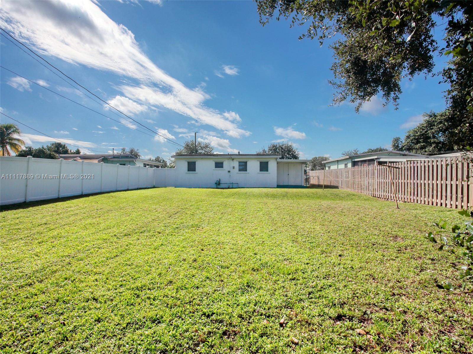 Great OPPORTUNITY to own 3 bedroom, 1 bath home nestled on a HUGE LOT (8,700 sq. ft) on tree lined street in the tranquil neighborhood of West Park. NEW ROOF w permits just installed. Ideal for investors or first time buyers wanting to OWN at an affordable price and renovate/expand to their style. Carport and shed may be easily converted for additional space. Fully fenced backyard for children and pets. Located on private street with easy access for residents. Create your unique outdoor living with ample room for pool, playground, BBQ & MORE. Minutes to beach, Hard Rock and GulfStream.