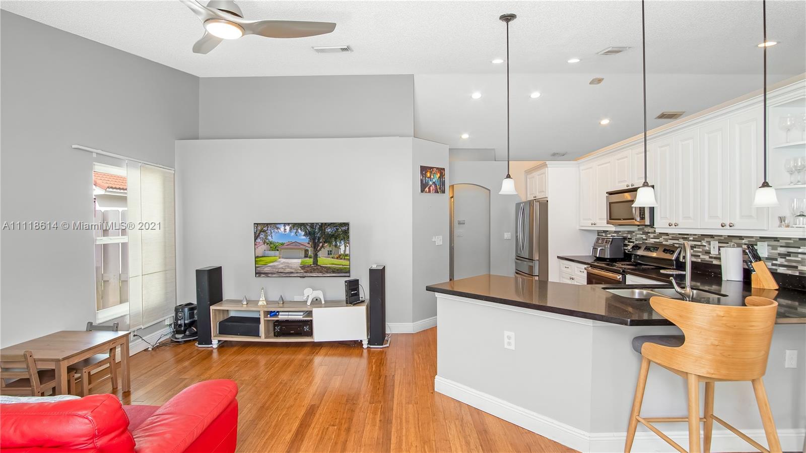 Beautiful Single Family Residence in Trilogy a family friendly community and desirable neighborhood in Miramar. This stunning 3 bedroom, 2 Full Bath home features updated flooring throughout, stainless steel appliances, updated Bathrooms, Impact Windows, two car garage, screened-in patio terrace, and nice size backyard with a new pool. This home is designed with a split floor plan, which creates a sense of privacy from the ensuite master and the guest bedrooms. A must see!!!