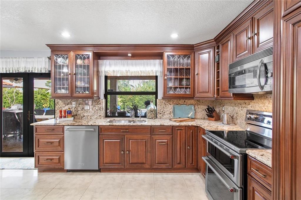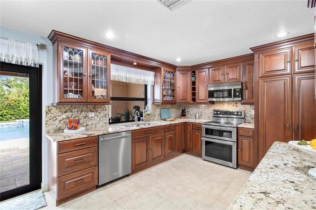 Enjoy your favorite drink while relaxing by the beautiful Saltwater pool area of this Impeccable 4/2 Corner home, adorned with over $100,000 in upgrades: Metal Roof - Impact Windows- Cherry wood Kitchen cabinets & Granite Countertops - KitchenAid Appliances - 2 LENNOX 3 Tons AC - Remodel Pool: New plumbing, pump, Jacuzzi blower & inside multicolored lights - Entirely patio fenced and paved - Security system & fire alarm – Tankless w/heater. Open concept family room & Kitchen with a lot of storage, plus extra formal Dining & Living rooms. Master bathroom Include Jacuzzi, dual sinks, walk-in closet and doors leading to the pool area. Huge patio with Mangos, Sower-sop & Moringa trees & a wide gate for extra parking space. This Gorgeous home was designed for the enjoyment of loved ones.