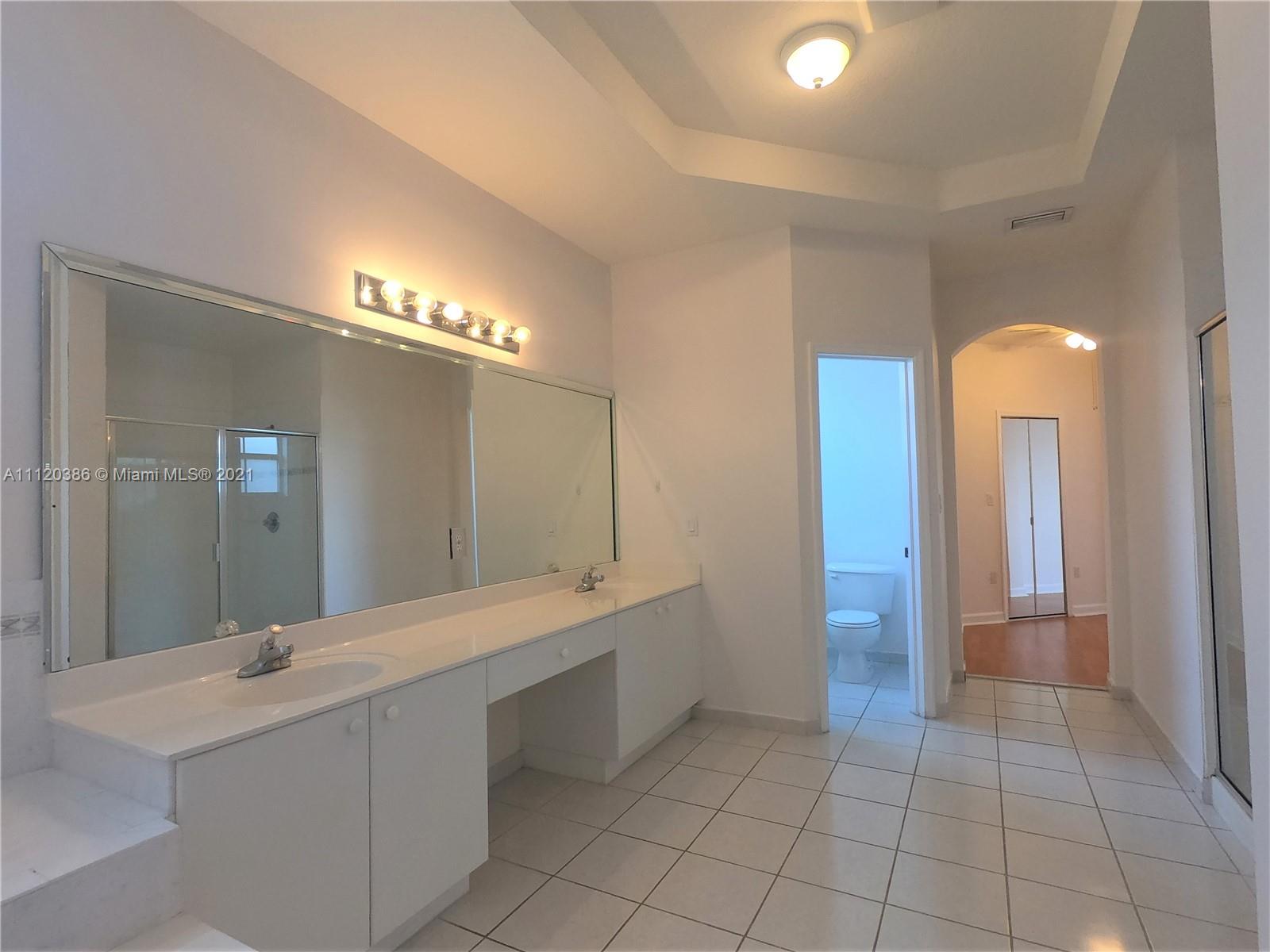 Spacious and well maintained house 5 Bedrooms, 4 Bathrooms located in Island of Doral. One bedroom with full bathroom downstairs, stainless steel appliances, granite countertops, tile floor downstairs and laminated floors upstairs, huge kitchen with plenty of cabinets, family and dinning room, two car garage. The community offers pool, clubhouse, tennis court and much more.