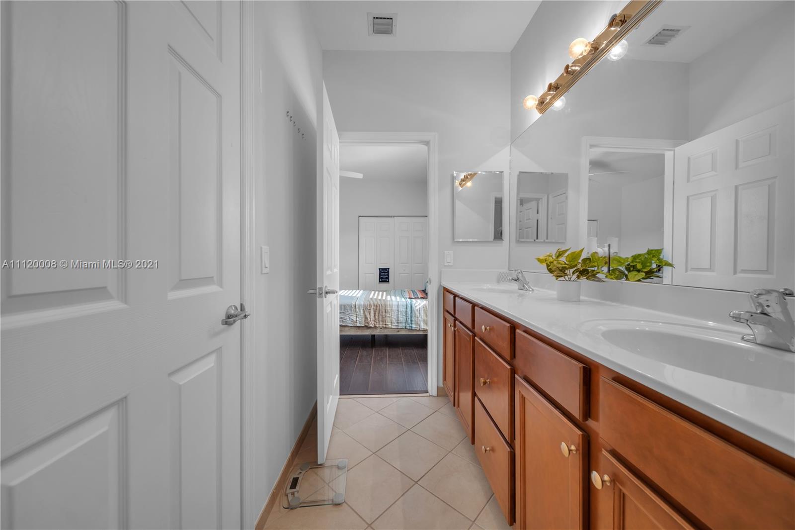 Beautiful 3-bedroom 2.5-baths,2-story home with 2-car garage.Offers 48x48 Porcelain Tile throughout the 1st floor and Wood Flooring on the 2nd Floor. A Foyer, Living/Dining Room, Family Room, Breakfast Area, Brand New Kitchen with 42" Wood Cabinets, Huge Quartzite Island, Stainless Steel Appliances, Patio with Pavers, Beautiful Tropical Landscaping. The 2nd floor has a spacious Master Suite, along with 2 Bedrooms, access to shared bathroom with dual sinks, vanity and tub. Both Bedrooms offers wall to wall closets, along with Master Bedroom having a his and hers Walk In Closet. The master bathroom features a his and her vanity, glass enclosed shower and Roman tub. Home has Security Cameras System, 4 Spot Lights, Black out Shades throughout the upstairs, and Wood Blinds throughout the house.