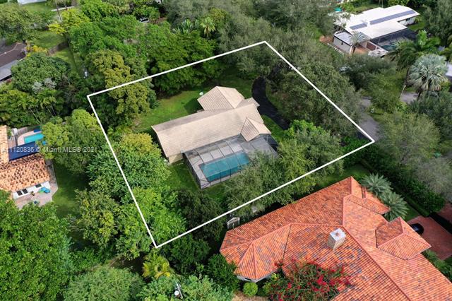 A rare opportunity to purchase a beautiful near-half acre in Pinecrest. The existing house has been well maintained in good condition. There are 4 bedrooms, 2 bathrooms, a family room/dining room, plus a large (16x25 sq ft) formal living room built post "Andrew". Tiled throughout, wood floors in formal living room. Lots of windows and sliding doors create a light, bright environment. The area is undergoing a substantial amount of renovation and this 18,620 sq ft lot, on a quiet, pretty street, is perfect for that new "dream home". There are magnificent 35- year old oaks, as well as a variety of other trees. Fully fenced for privacy & tranquility. Walk to all schools, parks, shops & restaurants.