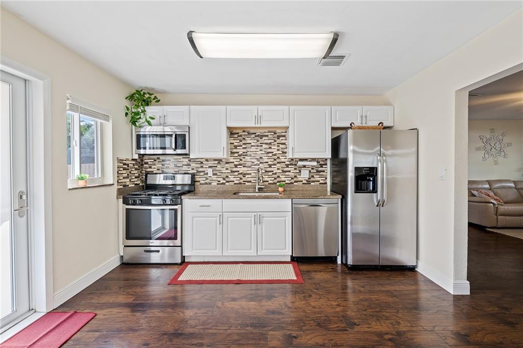 Very nicely remodeled house on great quiet interior street in the desirable North Andrews Gardens area. Large and open newer kitchen with granite counters, tiled backsplash, stainless steel appliances with bright dining area and workbench area. Nice wide plank laminate throughout, bathroom in great condition. Brand new AC and newer hurricane impact windows throughout. Property will be available Monday November 8th 2021 for showings.