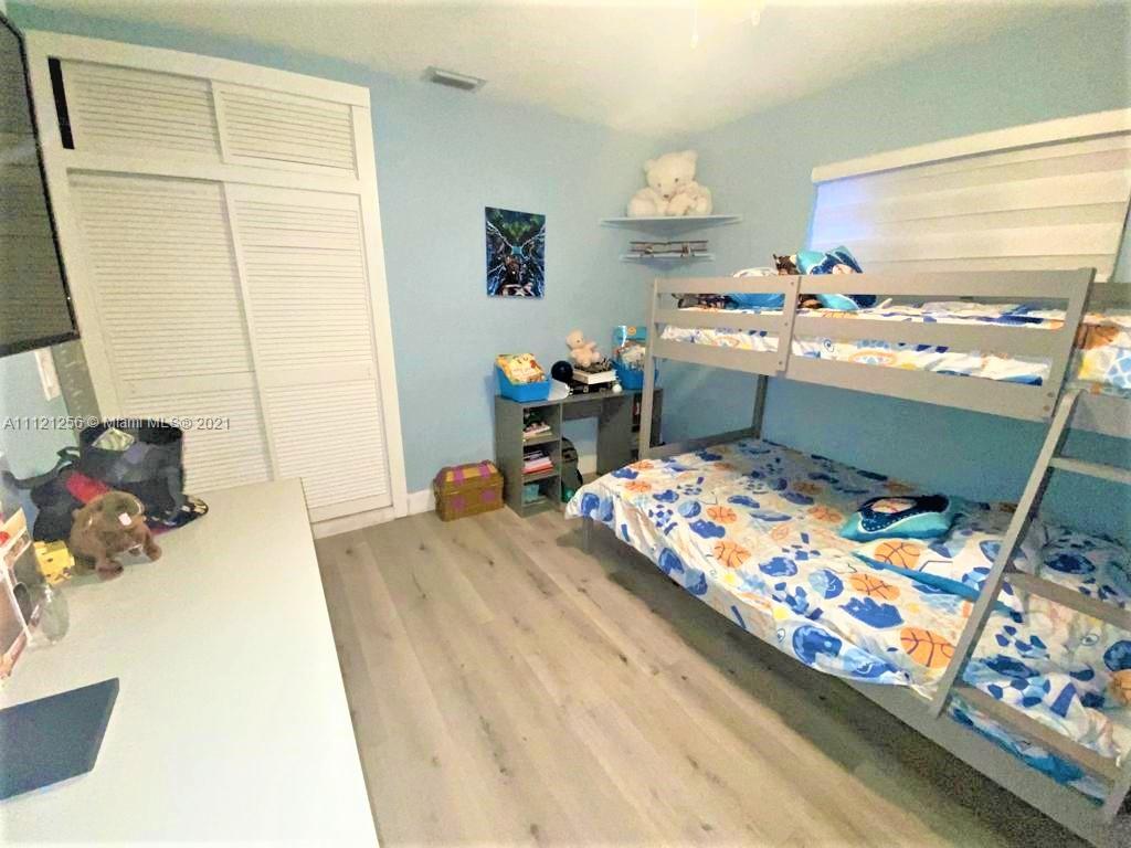 Beautiful 3/2 single family home with LED lighting and fans throughout. An area was converted as an additional bedroom, making it a 4-bedroom home. Many updates such as luxury vinyl floors with modern base boards. Guest bathroom which leads to pool was remodeled (2020), brand new energy efficient 5 ton Rheem AC under warranty, exterior Rinnai tankless gas water heater (installed in 2020), Roof under warranty (installed 2018), garage has been converted into large family area which has a new mini-split A/C unit and central cooling, impact resistant garage door (installed in 2019) with Lift Master garage door motor. Kitchen has been updated with quartz countertops and a beautiful backsplash, new and spacious laundry room with Samsung Washer & Dryer. Too many upgrades to list.