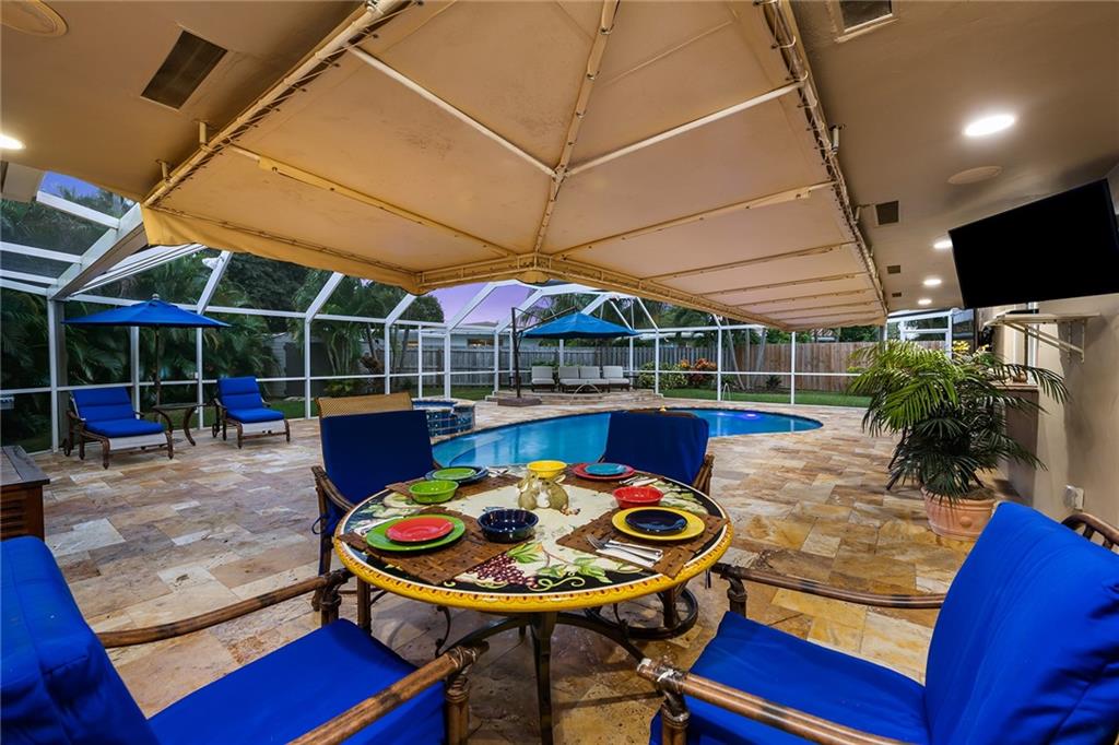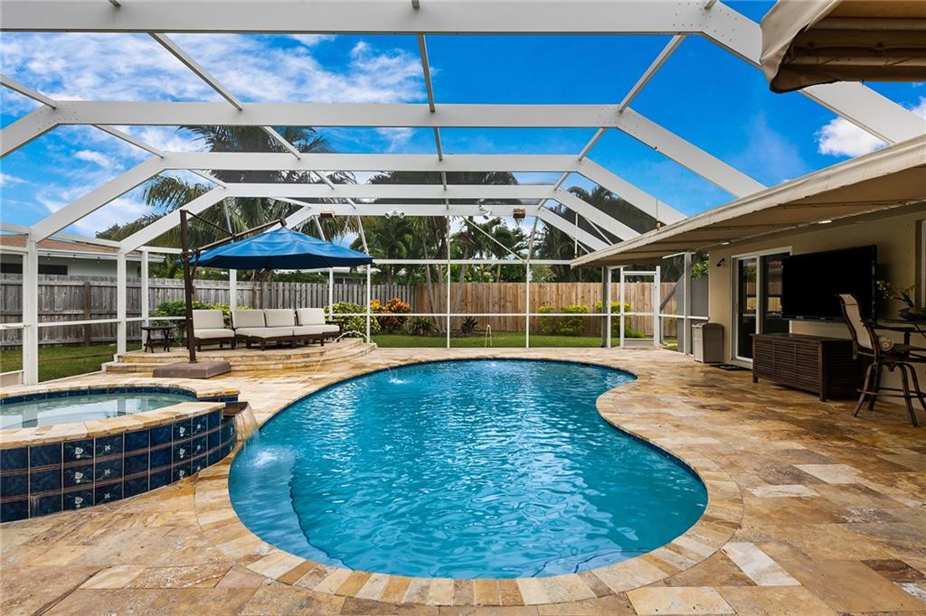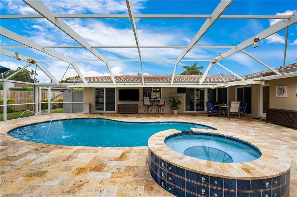 Welcome to the highly desirable Imperial Point. This spectacular single story home boasts 3 bedrooms, 2 bathrooms, long Chicago brick driveway & 2 car garage. Meticulously landscaped with privacy gate and Koi pond at entrance: the curb appeal is like no other. Spacious family room and kitchen overlook sprawling, screened-in Travertine patio with heated salt water pool, spa, outdoor shower, and fenced-in yard. Galley kitchen with stainless steel appliances, wood cabinets, granite countertops, breakfast area. Built-in cabinet storage in laundry room & garage. Master suite has access to the pool from bedroom slider and bathroom cabana door. Roof 2009, AC 2010, impact windows & doors (front door with panels). Close proximity to Westminster Academy & Pine Crest Private Schools, shops & beaches!